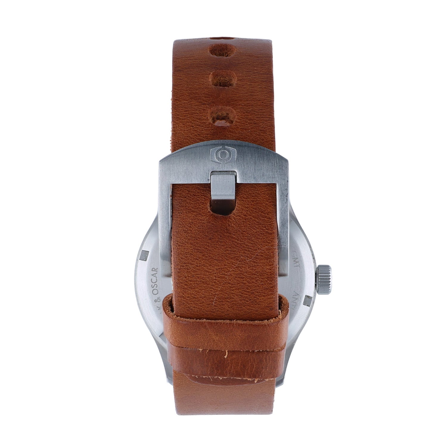 The Pre-Owned Oak & Oscar 40 mm Stainless Steel Humboldt GMT presents a refined balance of craftsmanship and functionality. Its clean black Arabic dial is complemented by a rich brown leather strap, offering understated elegance with a modern edge. Powered by a Swiss automatic GMT movement with approximately 56 hours of power reserve, this timepiece delivers dependable precision across time zones. With water resistance to 200 meters/656 feet, it is designed for both refined daily wear and discerning travel. A distinctive choice for collectors who appreciate independent watchmaking and timeless design.