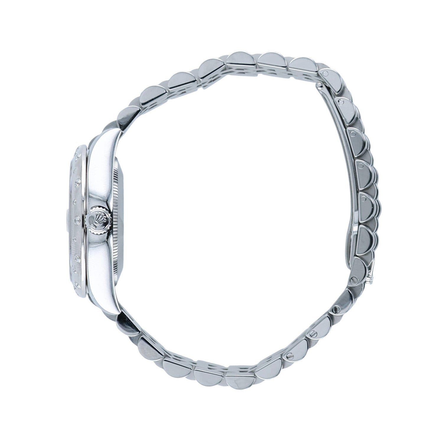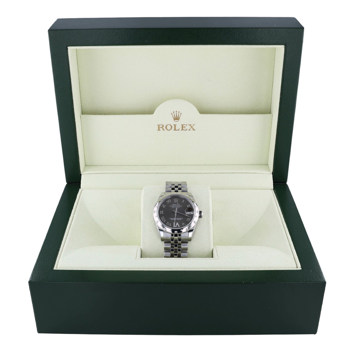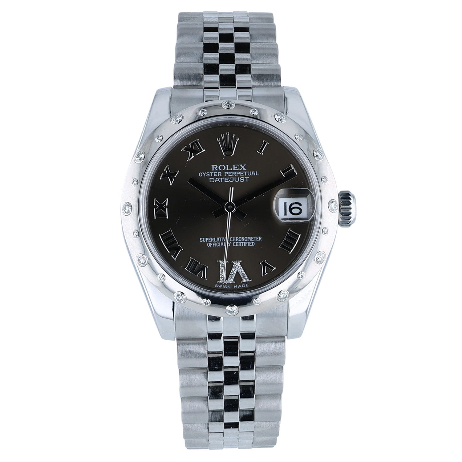 Pre-Owned Rolex 31mm Stainles Steel WG Brown Rom Diam 6 Oclock Scattered Diamond Bezel Jubilee Bracelet