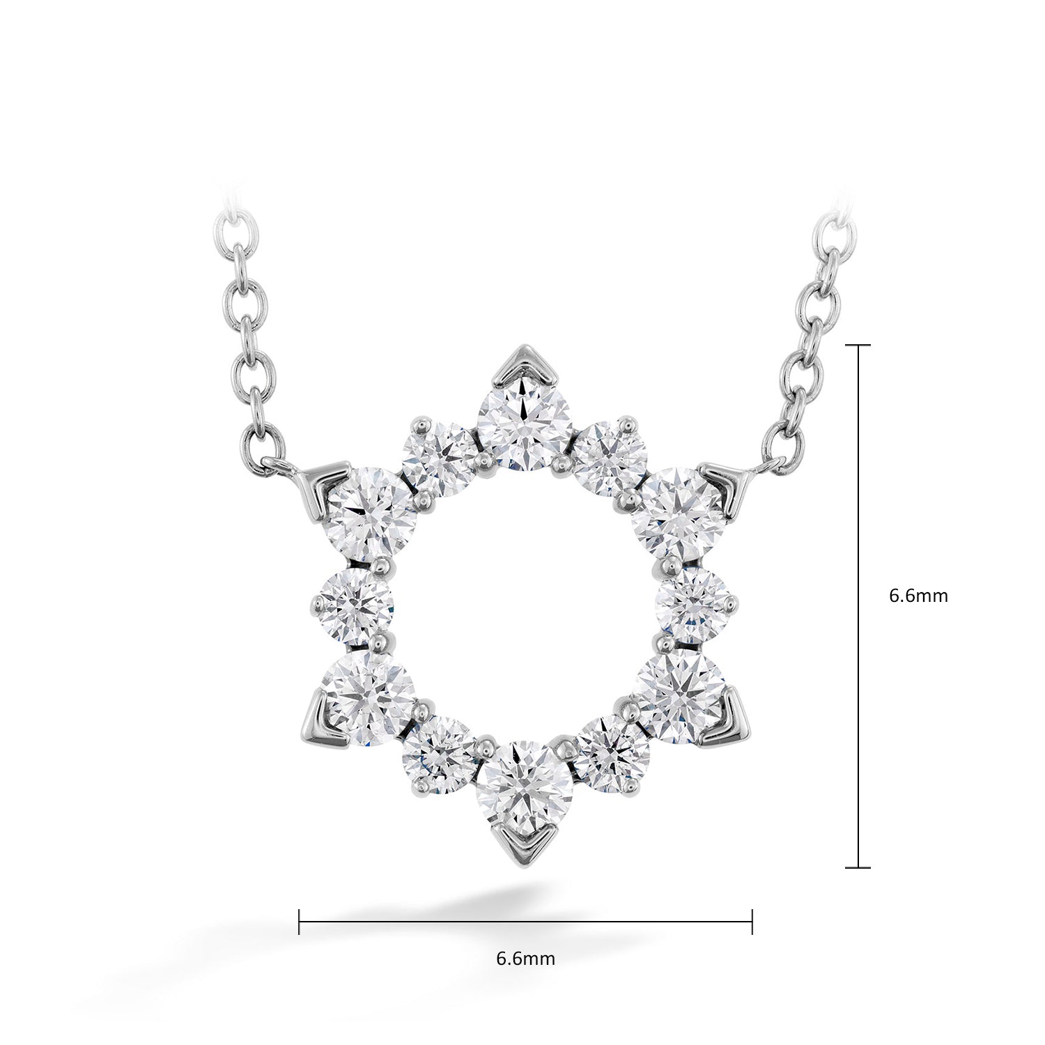 For a look that truly radiates, the Aerial Eclipse Pendant is the perfect choice. The illusion of a sun is created in this timeless, yet fashionable diamond necklace, making it an easy style to wear alone of layered with other diamond pendants.