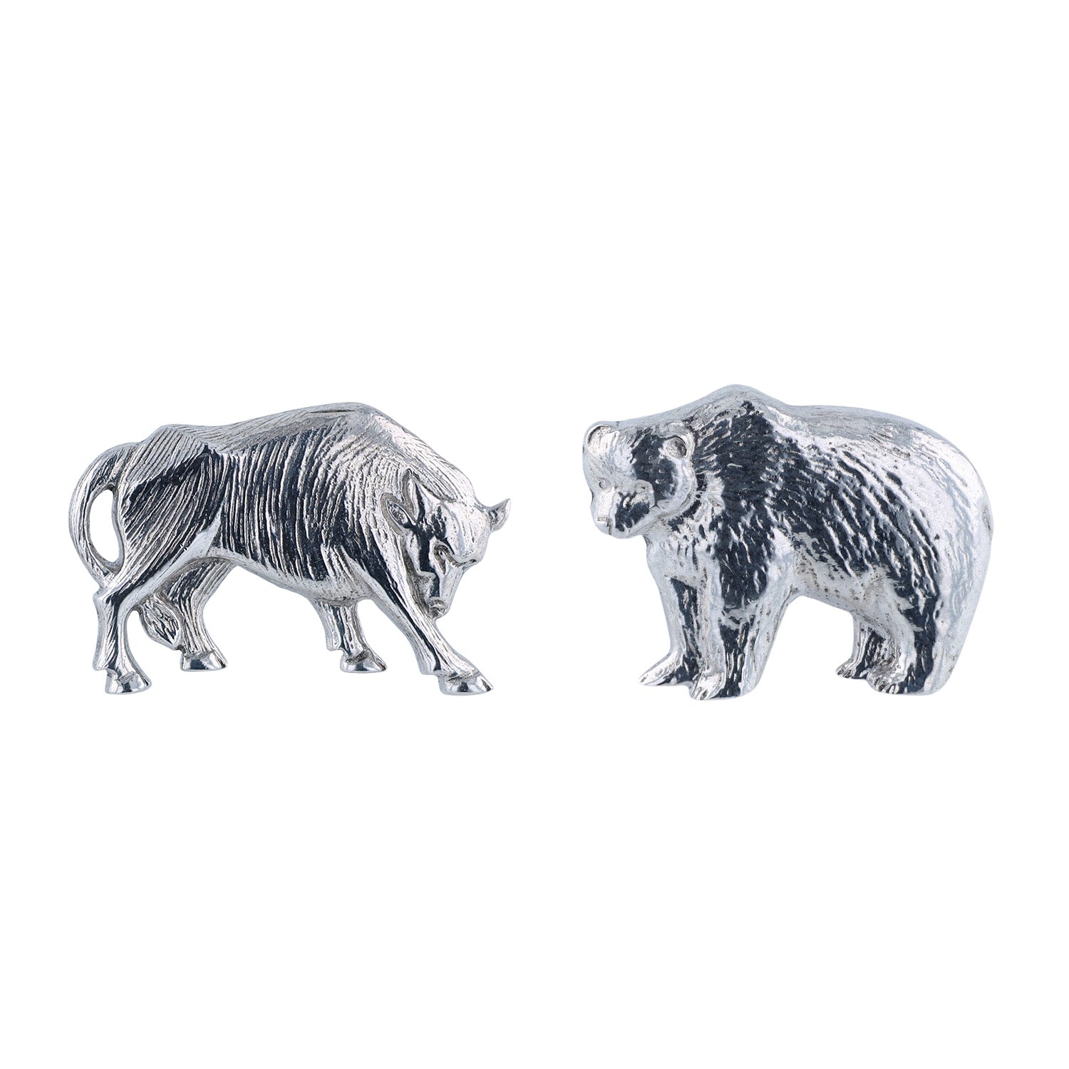 From the Bella Cosa Jewelers collection. This pair of cufflinks have been set in sterling silver and feature a bull and bear design.