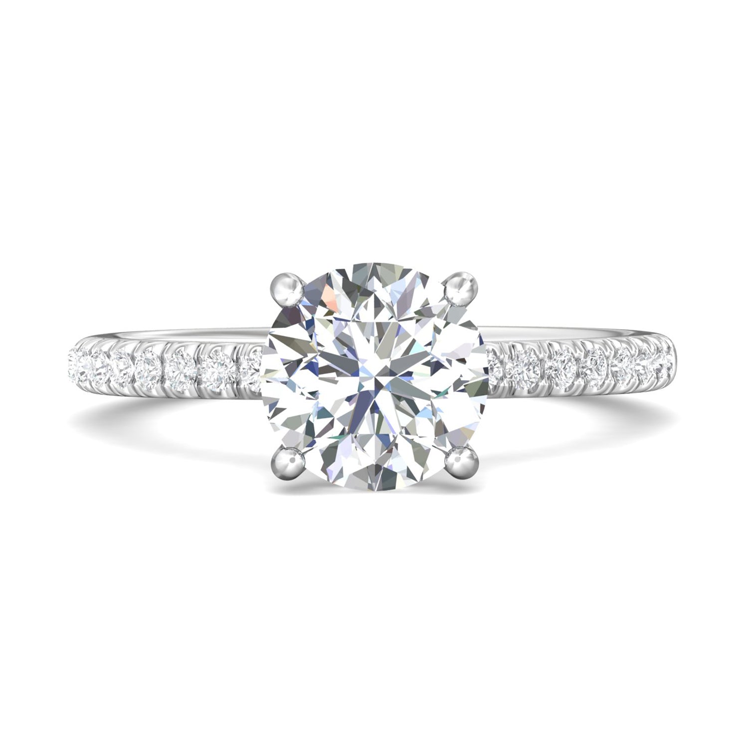 A FlyerFit engagement ring perfectly accented with a hidden halo and cutdown micropavé diamonds along your finger. Center Purchased Separately. Let our experts assist you in choosing the perfect center stone.