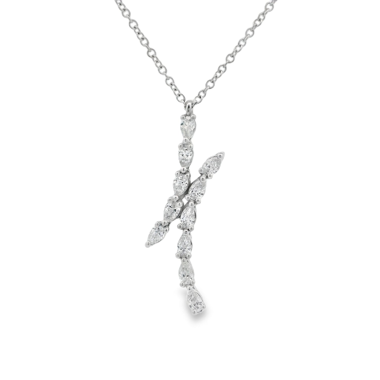 Passing strings of pear cut diamonds hang gracefully from a delicate 18K white gold. Milgrain-accented TACORI Crescents decorate the silhouette of each stone.
