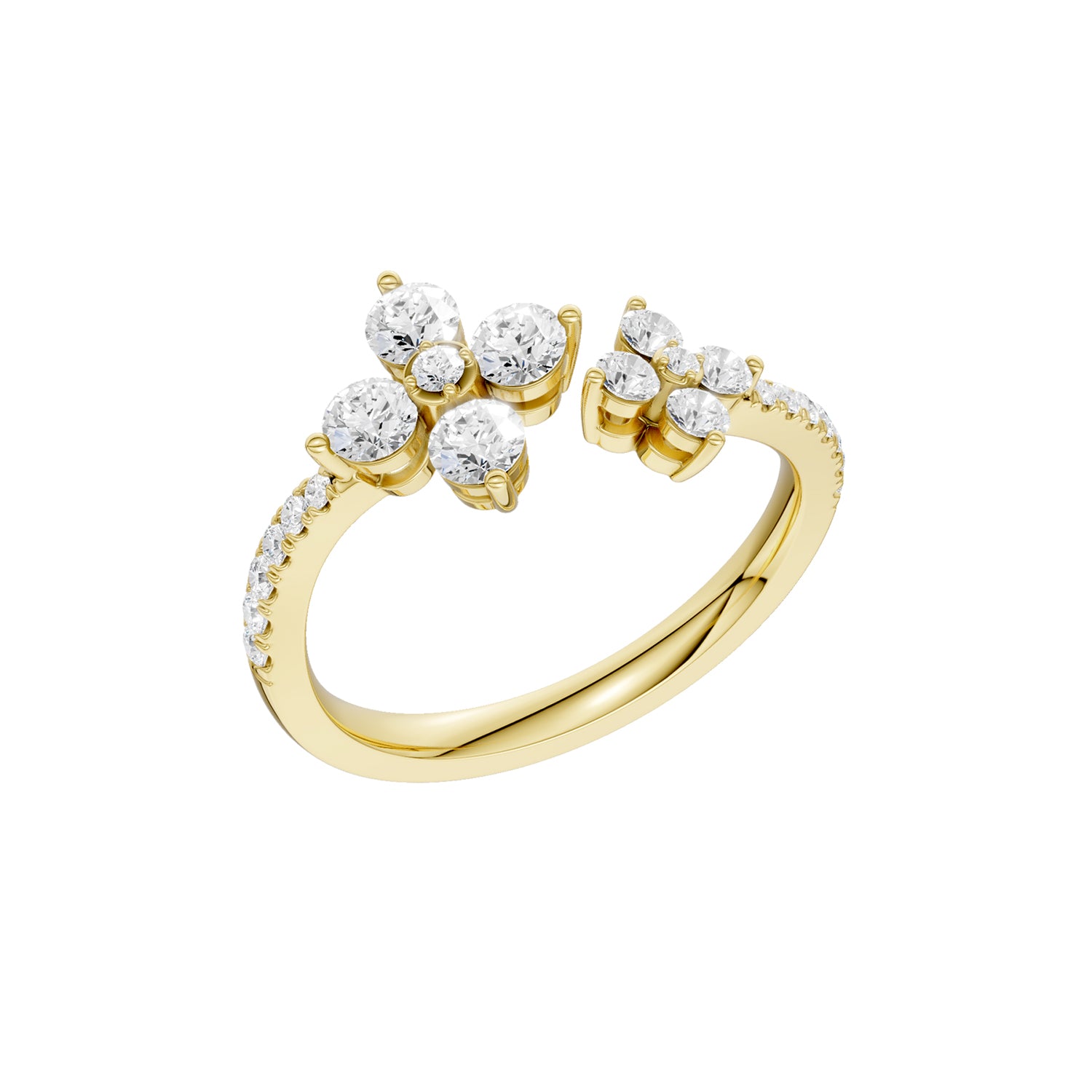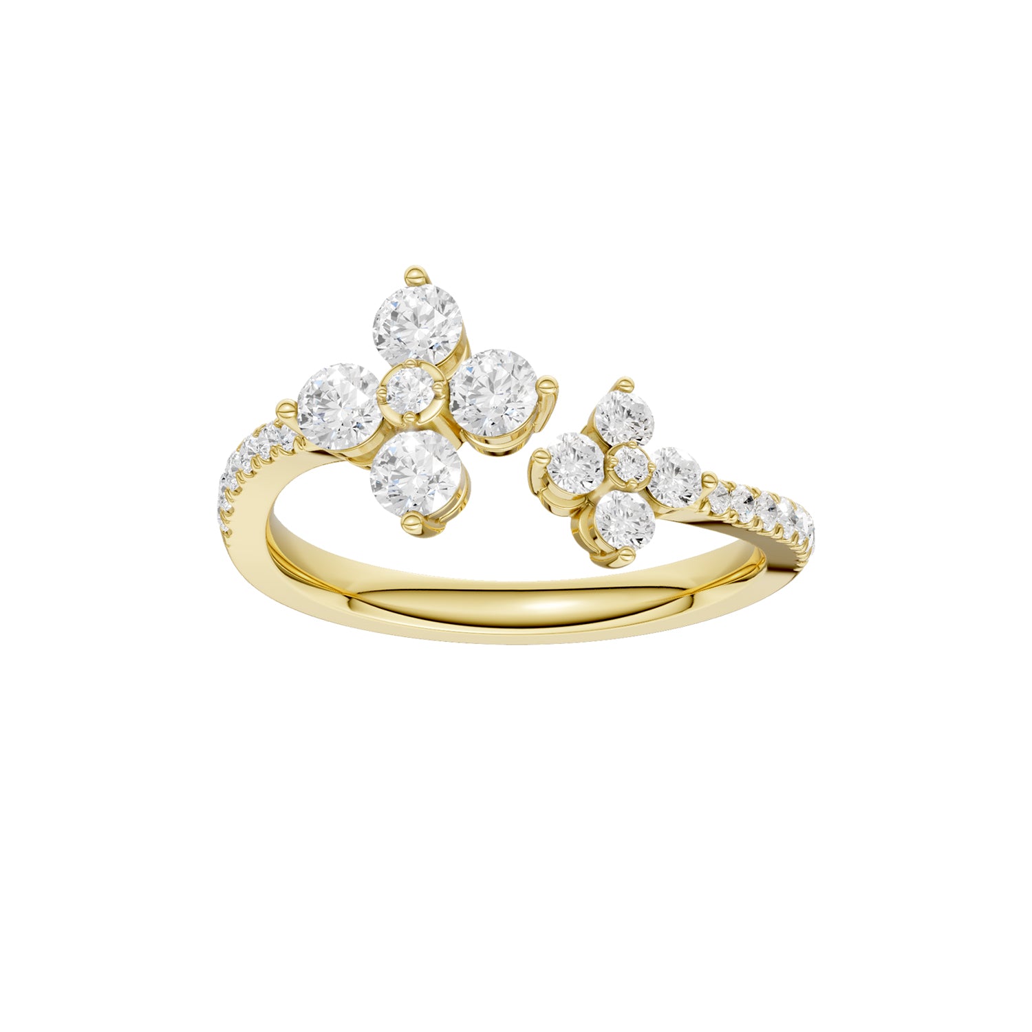 Delicate and dazzling, this flower petal cuff ring has been crafted in 14K yellow gold. The open cuff design features sculped petal motifs adorned with round lab grown diamonds.