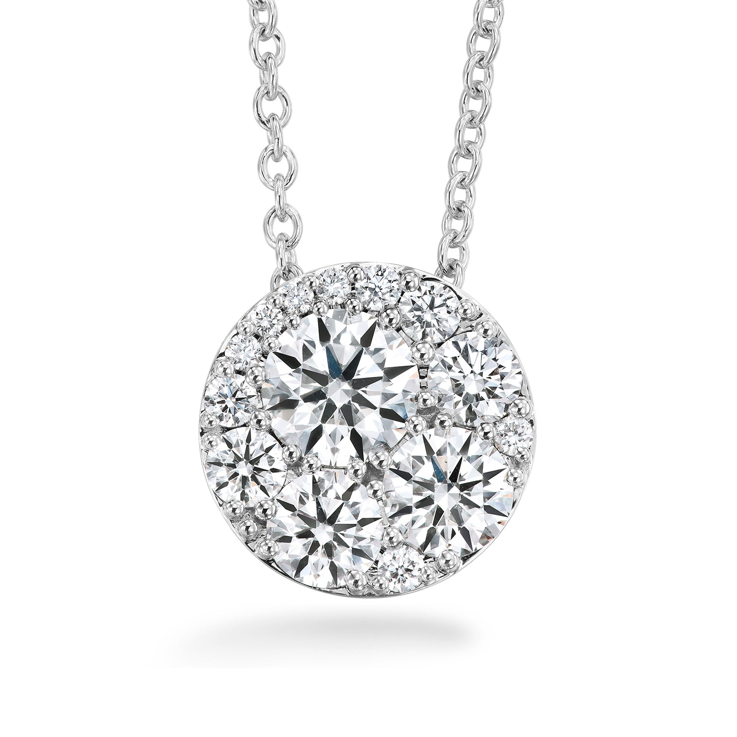 From our Hearts On Fire Tessa collection. This classic diamond necklace will add sparkle to every occasion. This diamond cluster circle pendant will be your new ‘must have’ piece of jewelry!