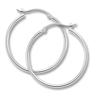 14K White Gold Hoop Earrings - 25mm x 1.5mm