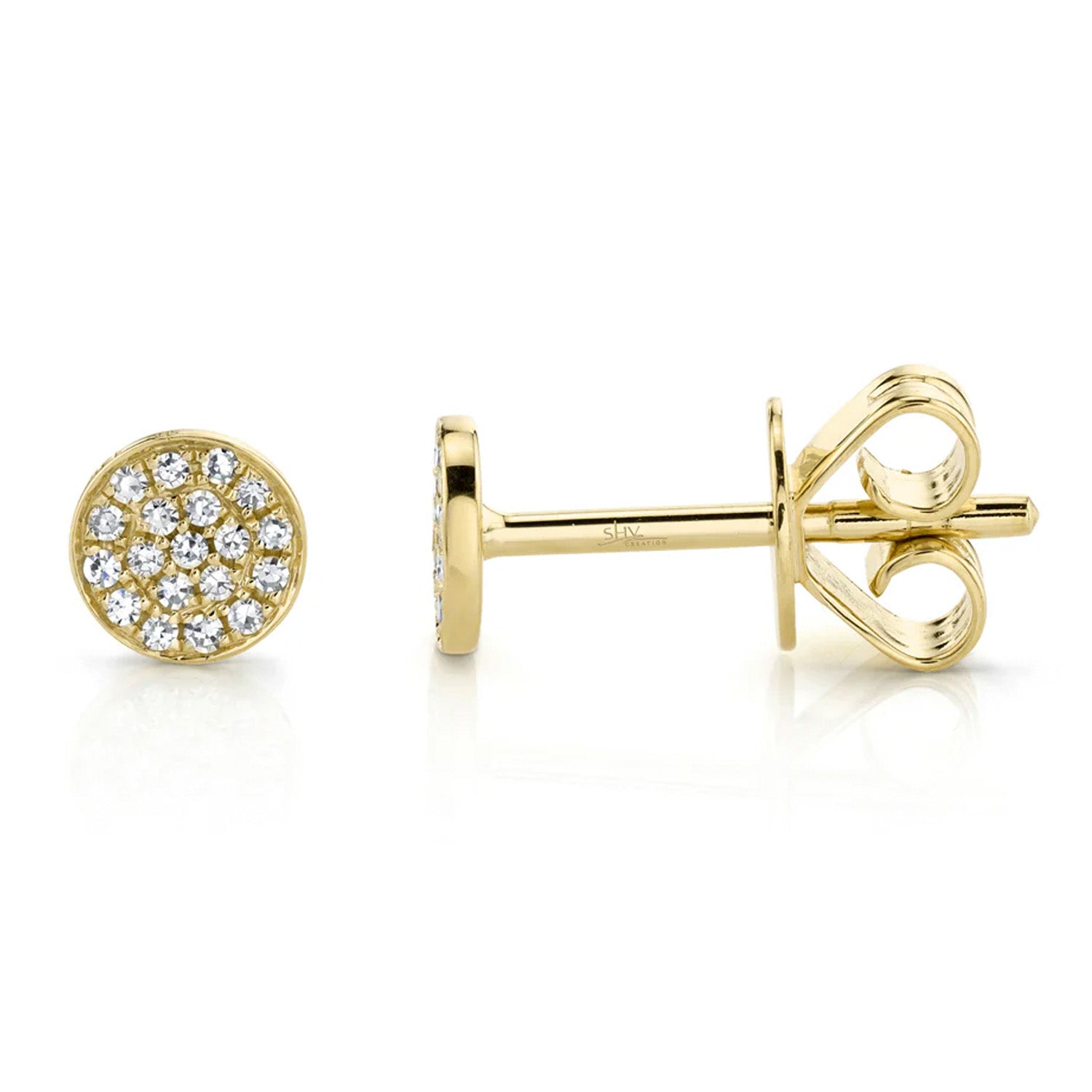 Shy Creation 14KY 0.07ctw Diamond Pave Circle Stud Earrings