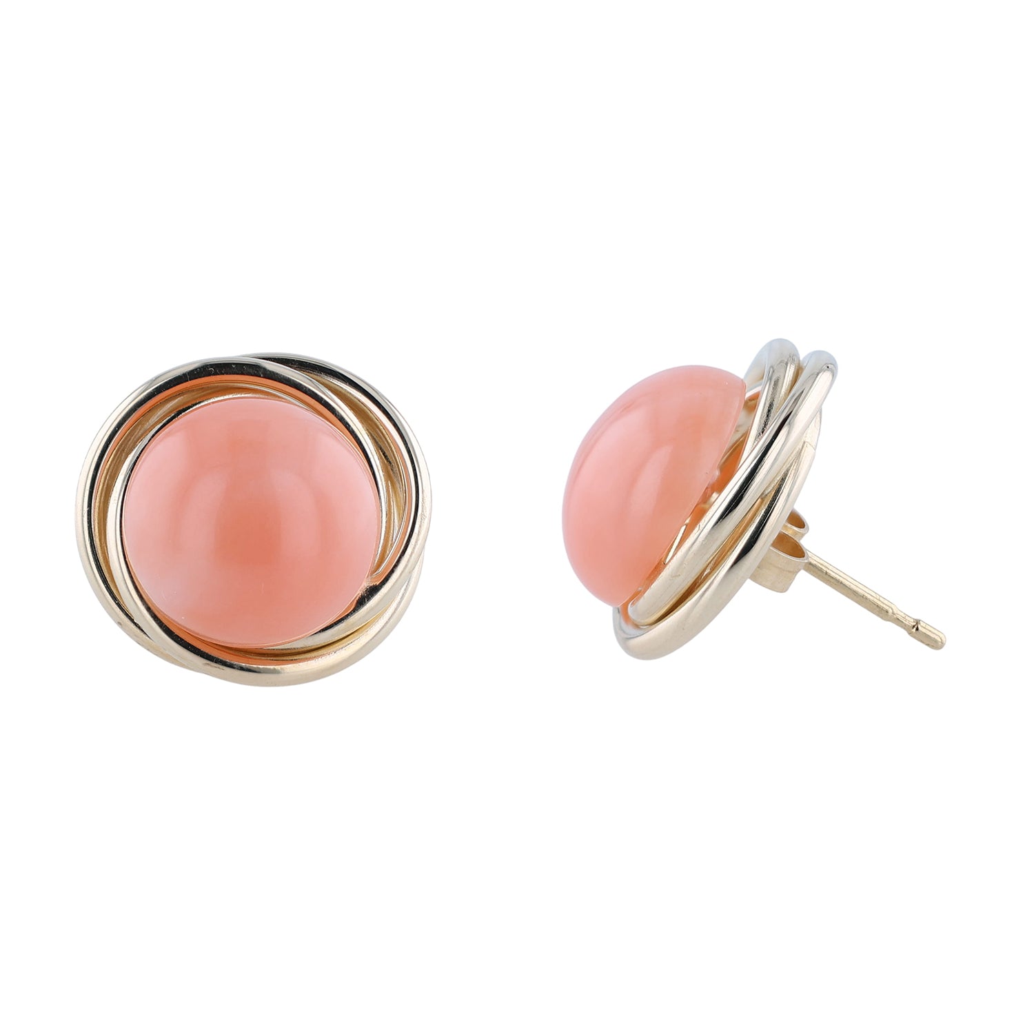 From the Bella Cosa Jewelers estate collection. This pre-owned pair of coral earrings have been set in 14K yellow gold and feature a friction back closure.