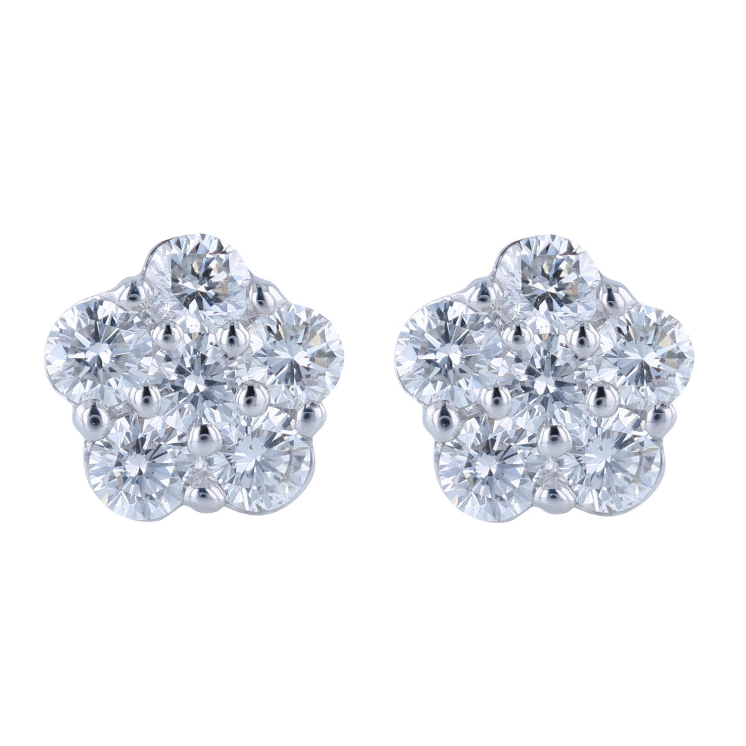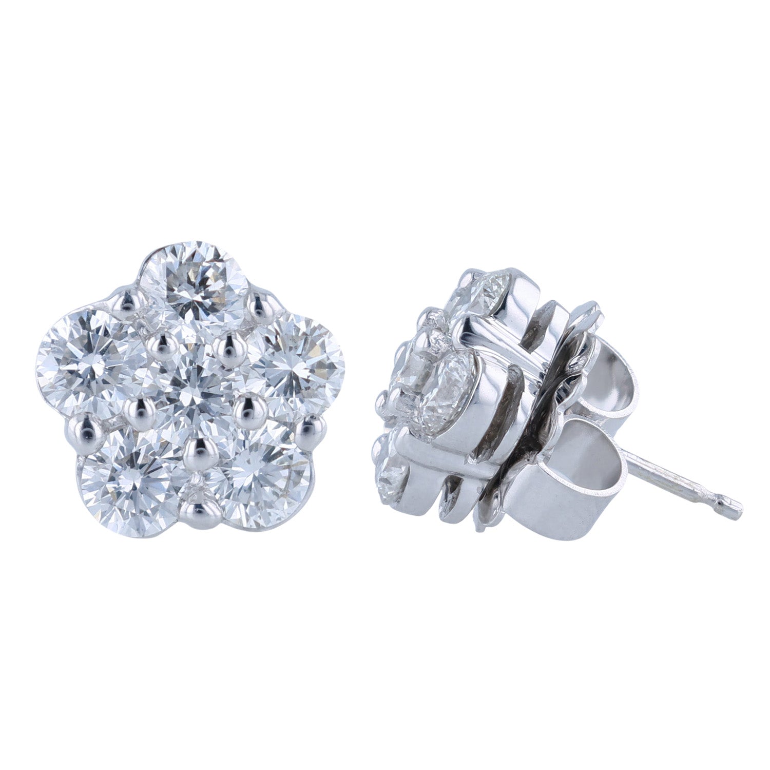 From the Bella Cosa Jewelers estate collection. This pre-owned pair of diamond cluster earrings have been set in 14K white gold. This pair of diamond earrings feature 1.84 carats of diamonds that are H to I in color and SI1 to SI2 in clarity. This pair of diamond earrings have a friction back closure. Diamond weights are estimated.