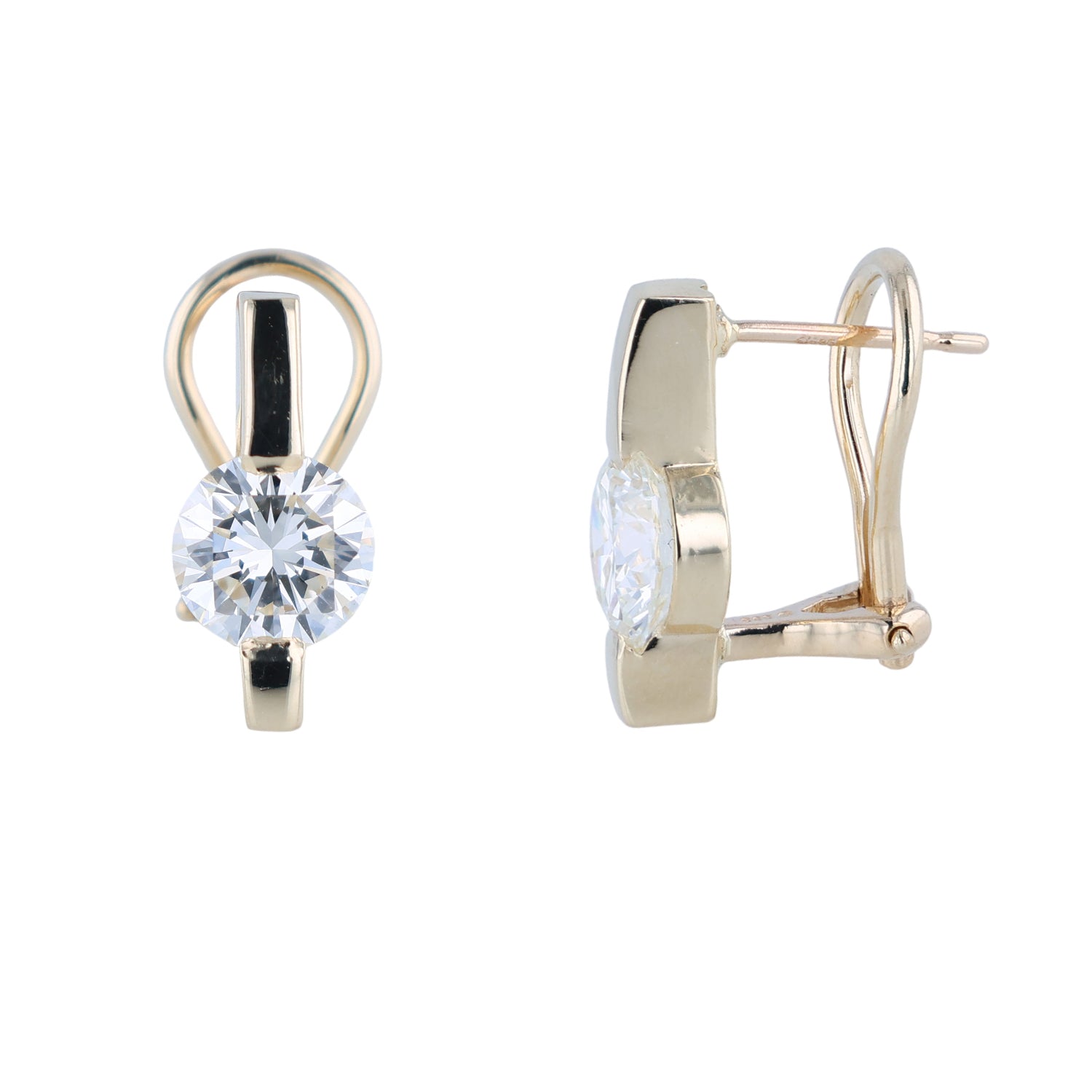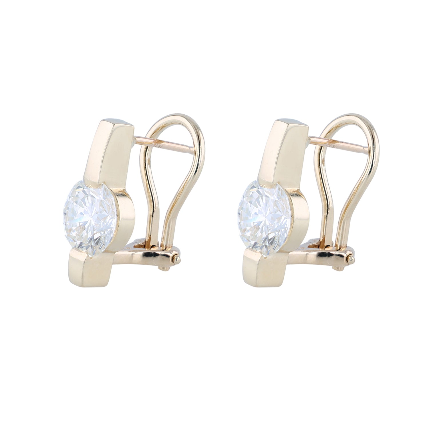 From the Bella Cosa Jewelers estate collection. This pre-owned pair of diamond earrings feature 2.58 carats of diamonds that are G in color and VS1 to VS2 in clarity. This pair of diamond earrings have been set in 14K yellow gold and have an Omega back closure. Diamond weights are estimated.