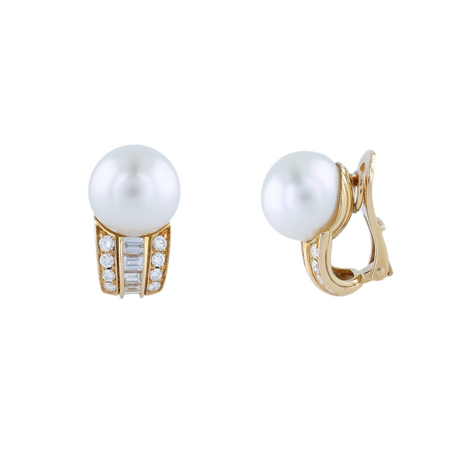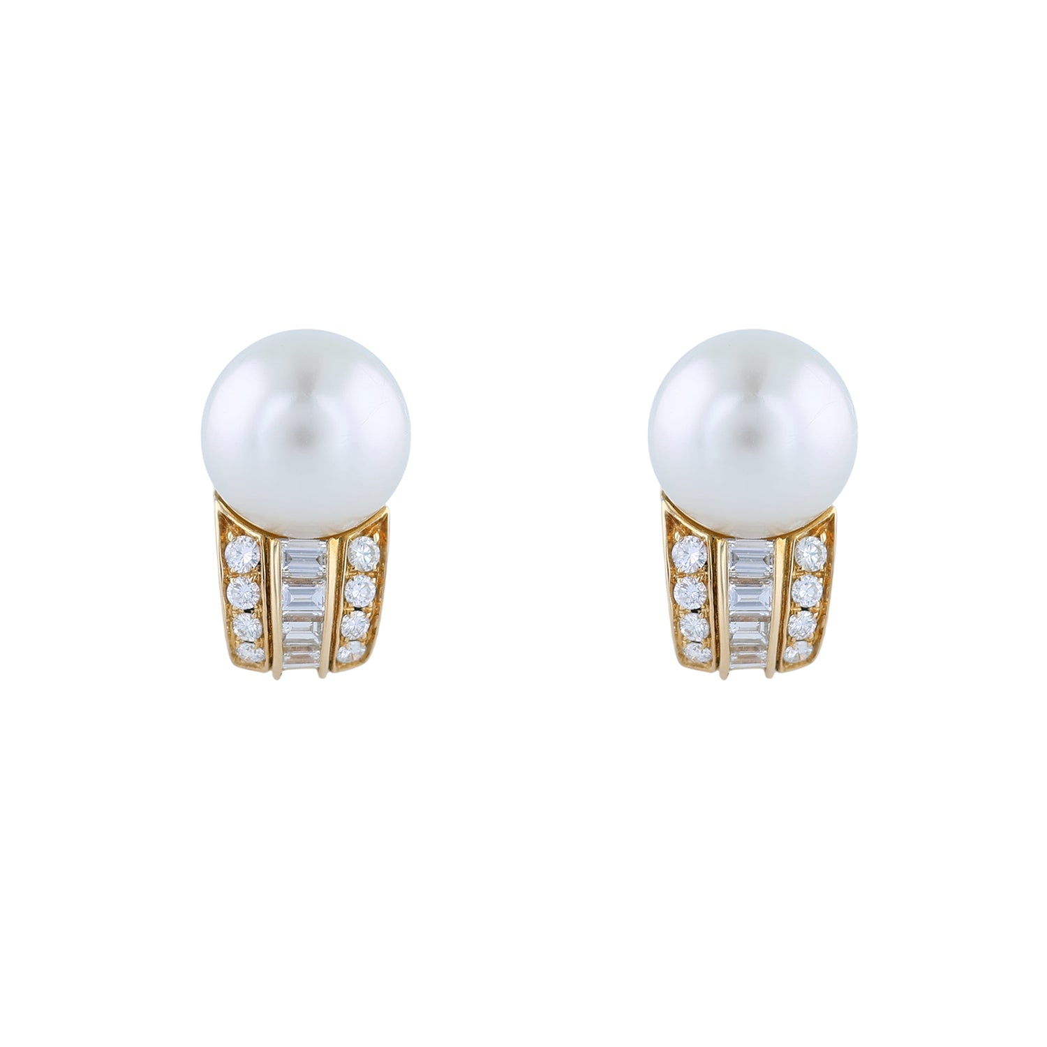 Estate Bvlgari 18K Pearl and Diamond Clip-on Earrings