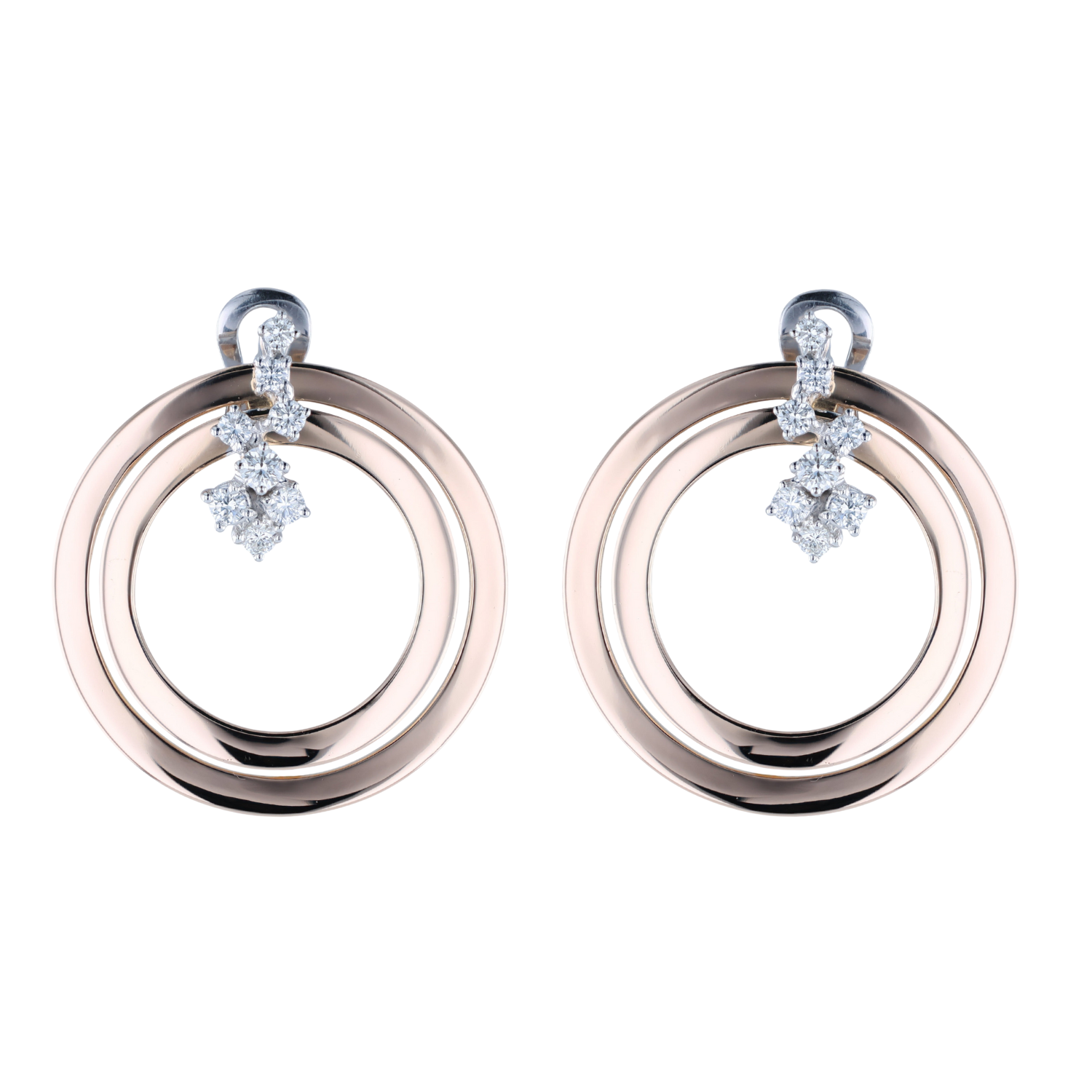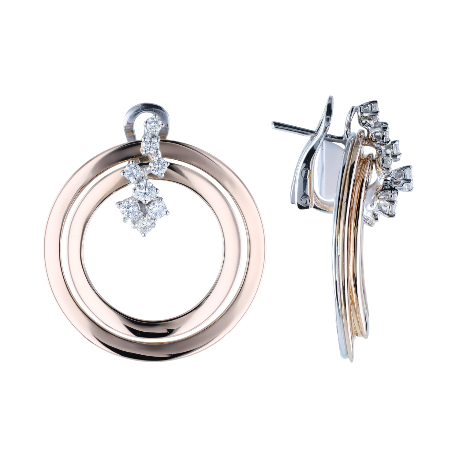 From the Bella Cosa Jewelers estate collection. This pre-owned pair of Damiani Sophia Loren diamond earrings have been set in 18K white and rose gold. This pair of Damiani earrings feature 0.68 carats of diamonds that are G to H in color and VS2 to SI1 in clarity. This pair of Damiani Sophia Loren earrings have an Omega back closure. Diamond weights are estimated.