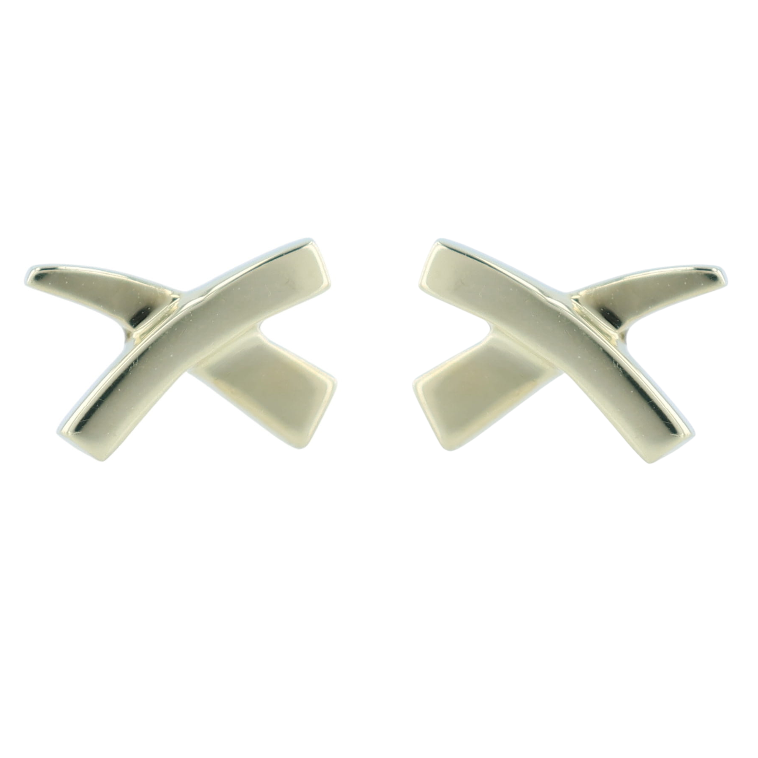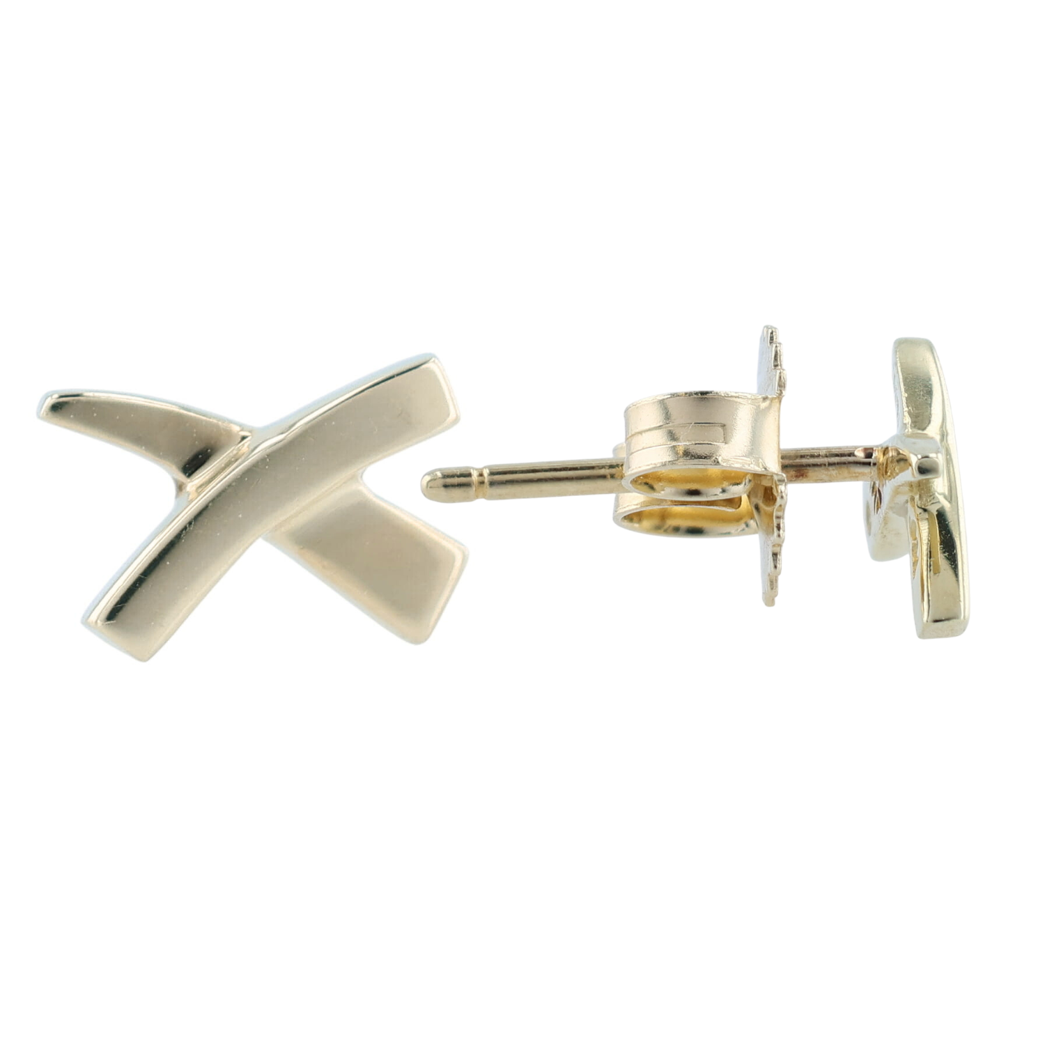 From the Bella Cosa Jewelers estate collection. This pair of pre-owned Tiffany & Co. Paloma's Graffiti X earrings have been set in 18K yellow gold. This pair of Tiffany & Co. earrings feature a friction back closure with 1 backing marked Tiffany & Co. and 1 non-branded replacement backing that is 18K yellow gold. The original retail for this pair of Tiffany & Co. yellow gold earrings is $810.