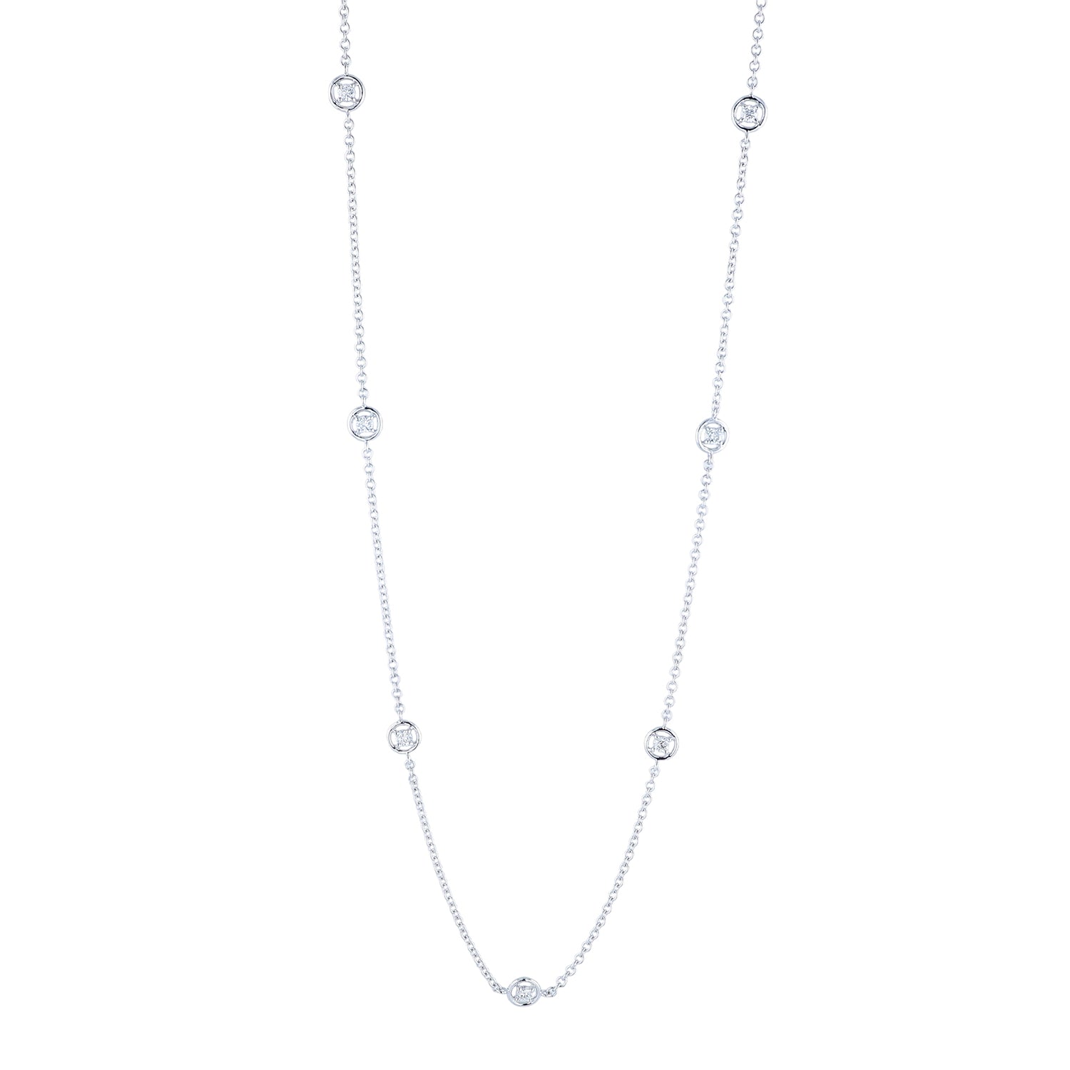 From the Bella Cosa Jewelers estate collection. This diamonds by the yard necklace features 0.80 carats of diamonds that are G to H in color and SI1 to SI2 in clarity. This diamond necklace has been set in 18K white gold and measures 32 inches in length. Diamond weights are estimated.