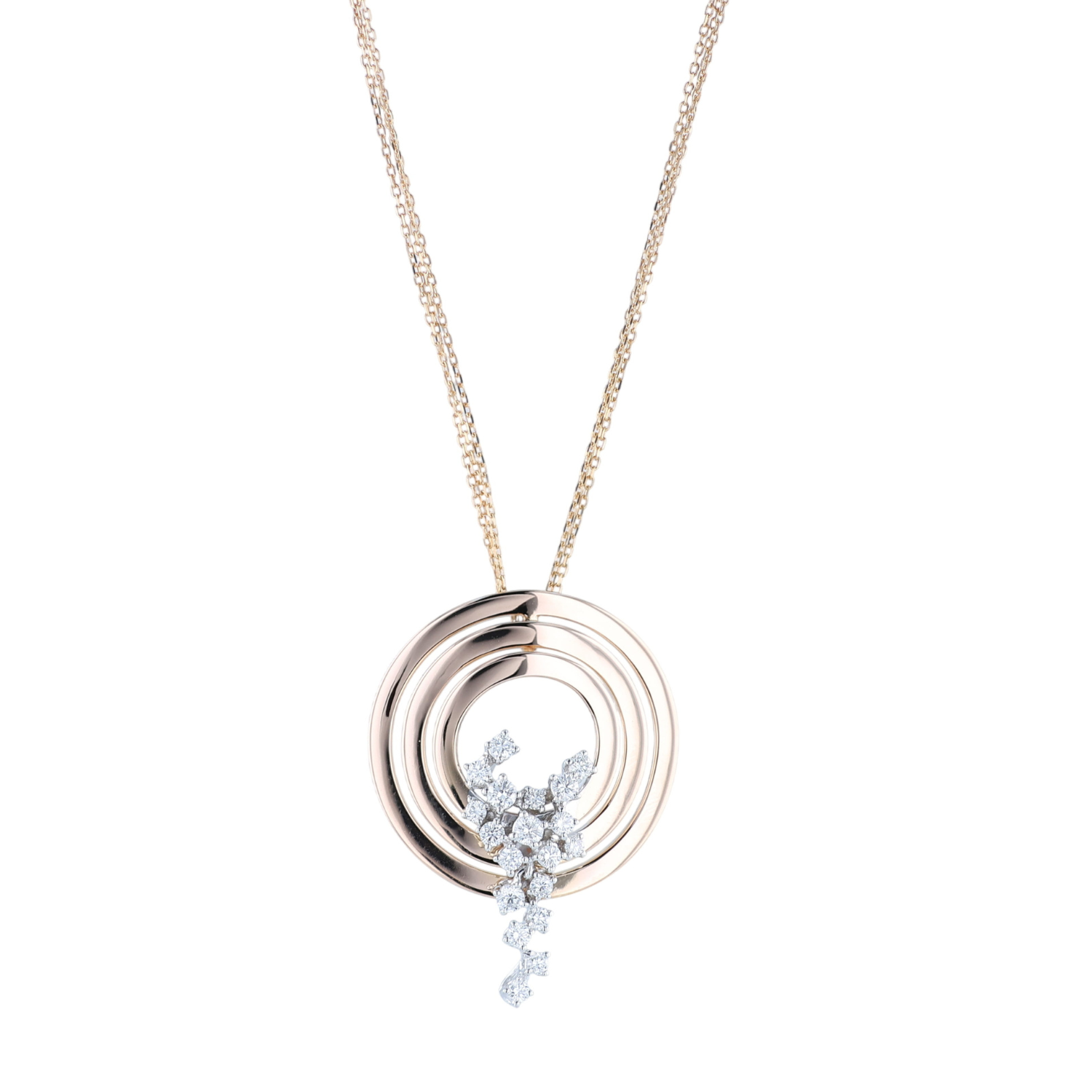 From the Bella Cosa Jewelers estate collection. This pre-owned Damiani Sophia Loren diamond pendant has been set in 18K rose and white gold. This Damiani Sophia Loren pendant features 0.84 carats of diamonds that are G to H in color and VS2 to SI1 in clarity. This Damiani diamond pendant comes with a rose gold chain that measures 20 inches in length. Diamond weights are estimated.
