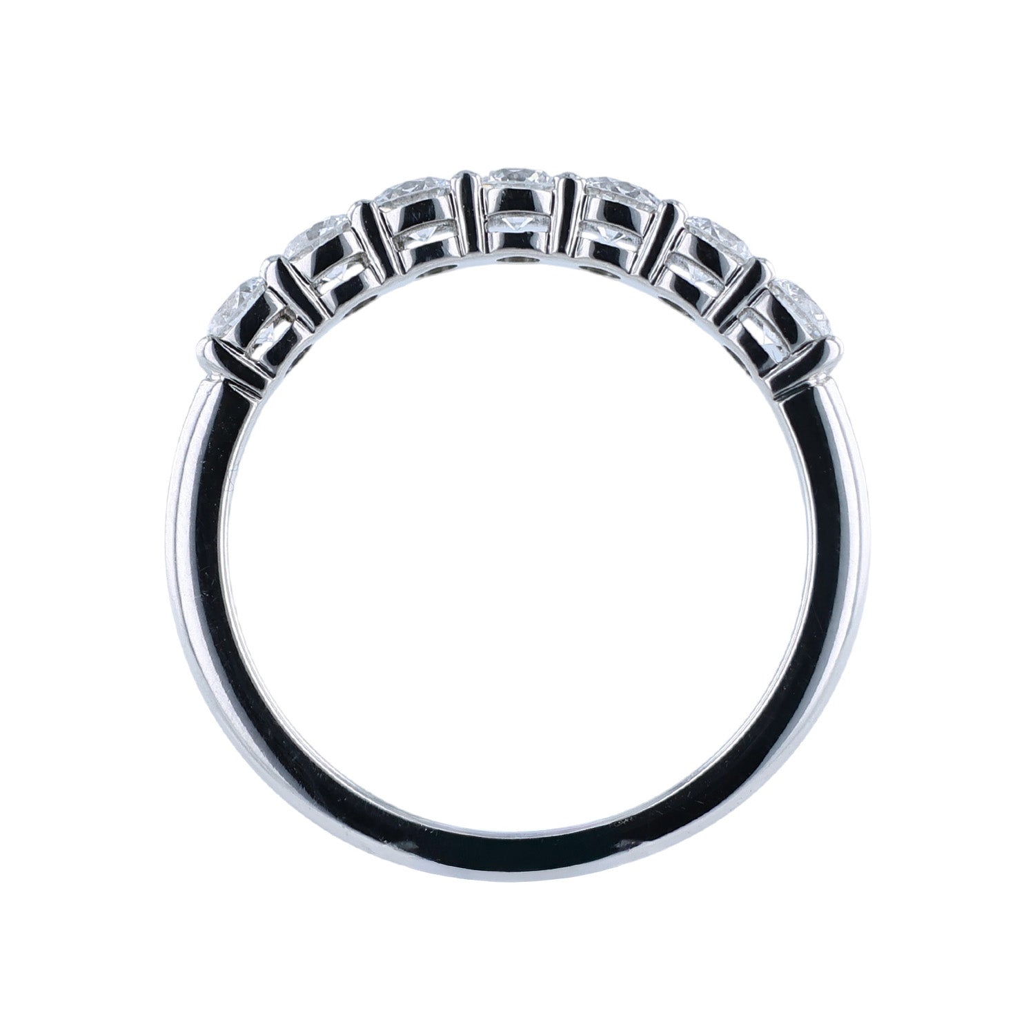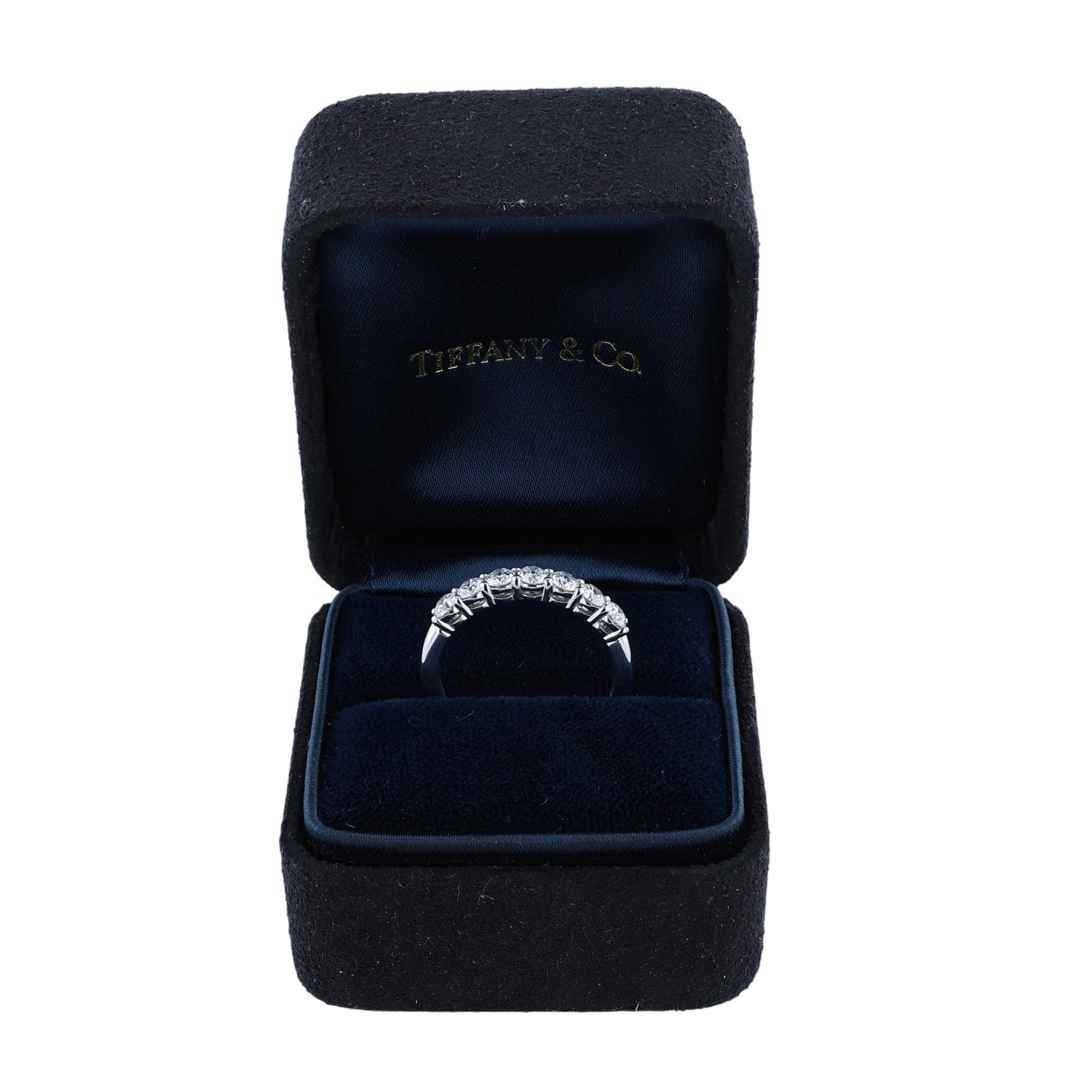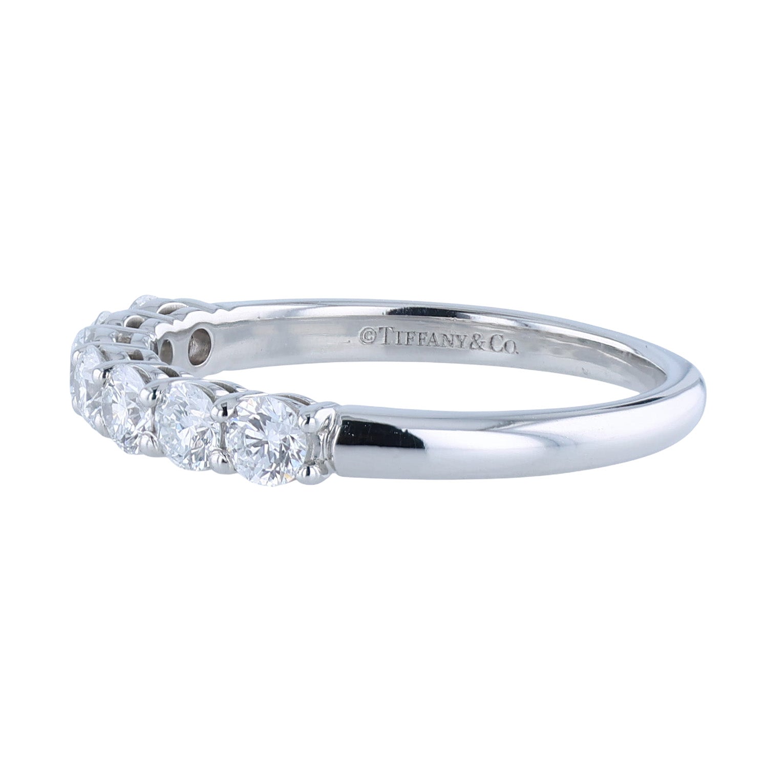 From the Bella Cosa Jewelers estate collection. This pre-owned Tiffany & Co. Forever diamond band has been set in platinum. This Tiffany & Co. ring features 0.63 carats of diamonds that are F to G in color and VVS2 to VS1 in clarity. This Tiffany & Co. diamond band originally retails for $7000 and measures a size 6. Diamond weights are estimated. Includes box.