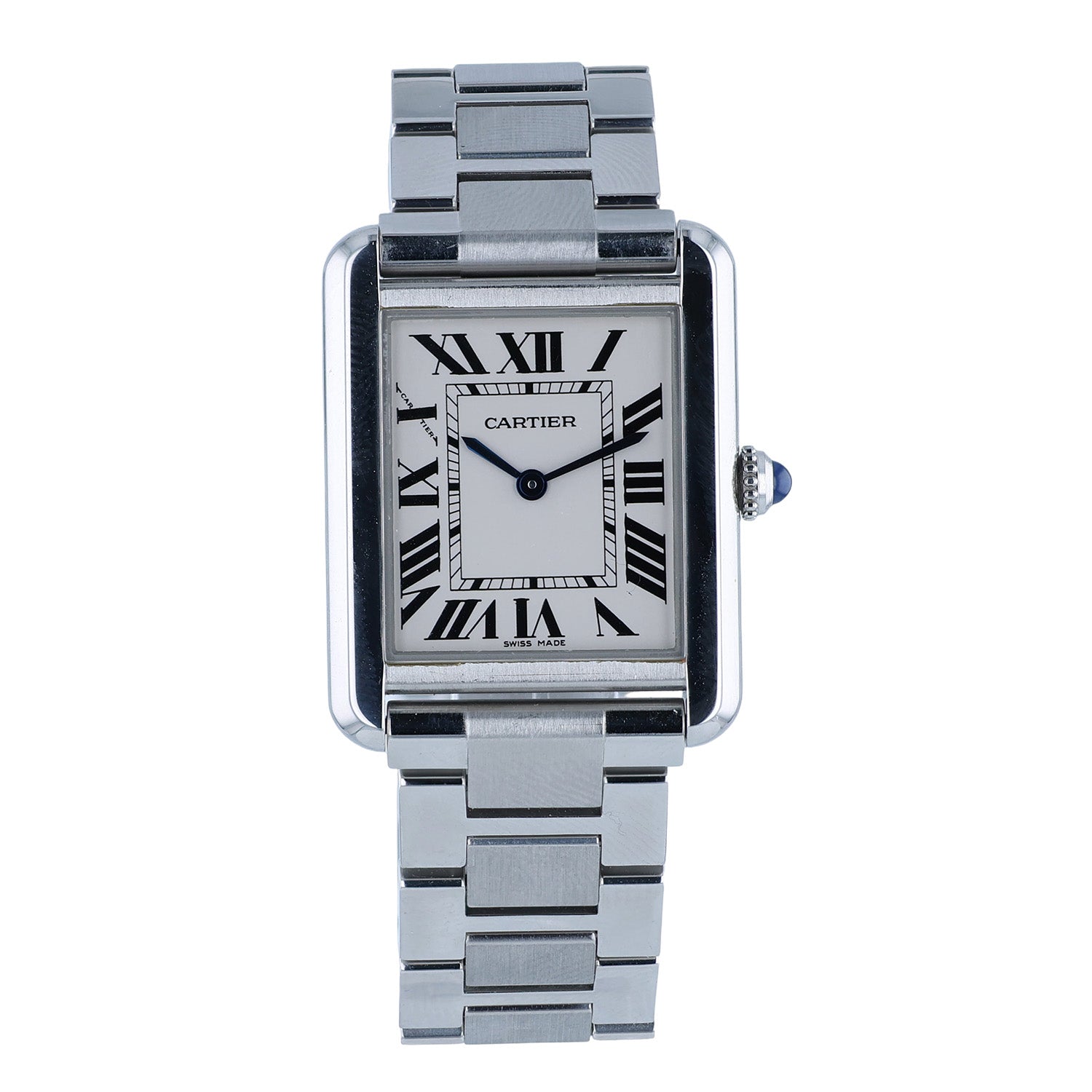 Classic style with modern versatility. The Cartier Tank Solo 3170 features a 24 x 31 mm stainless steel case, silver dial with Roman numerals, and a matching stainless steel bracelet with deployment clasp. Powered by a precise quartz movement and water-resistant up to 30 m (98 ft), it’s perfect for everyday wear or special occasions. No box, no papers.