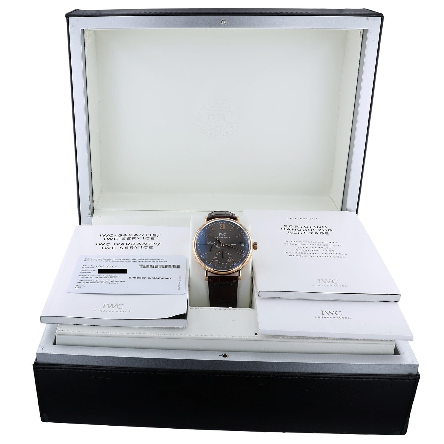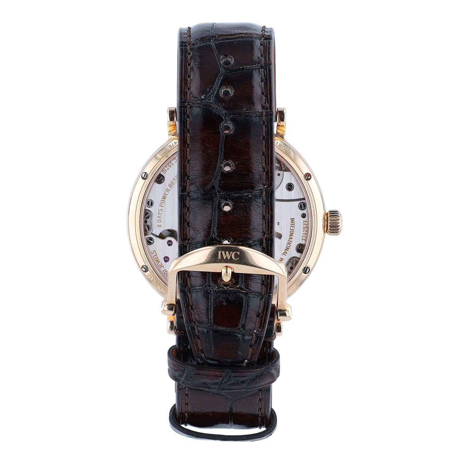 Pre-Owned IWC 45mm 18KT Rose Gold Portofino Hand-Wound Eight Days Brown Alligator Leather Strap