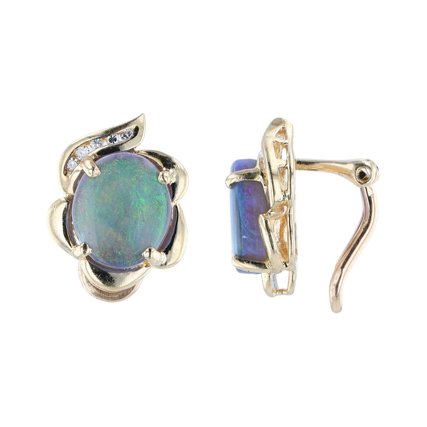 Estate 14K Black Opal and Diamond Clip-On Earrings