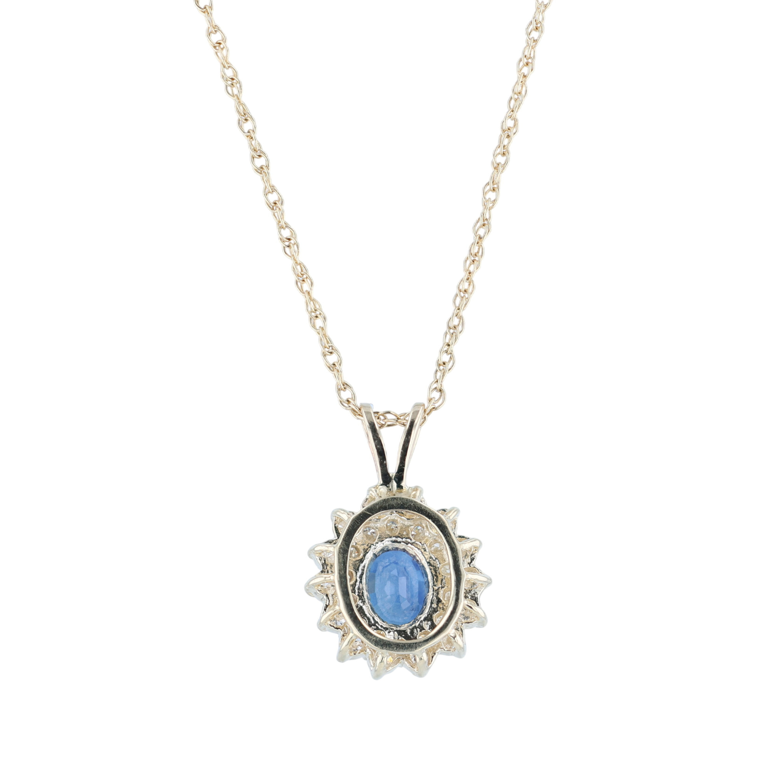 Estate 14K Sapphire and Diamond Pendant on Chain