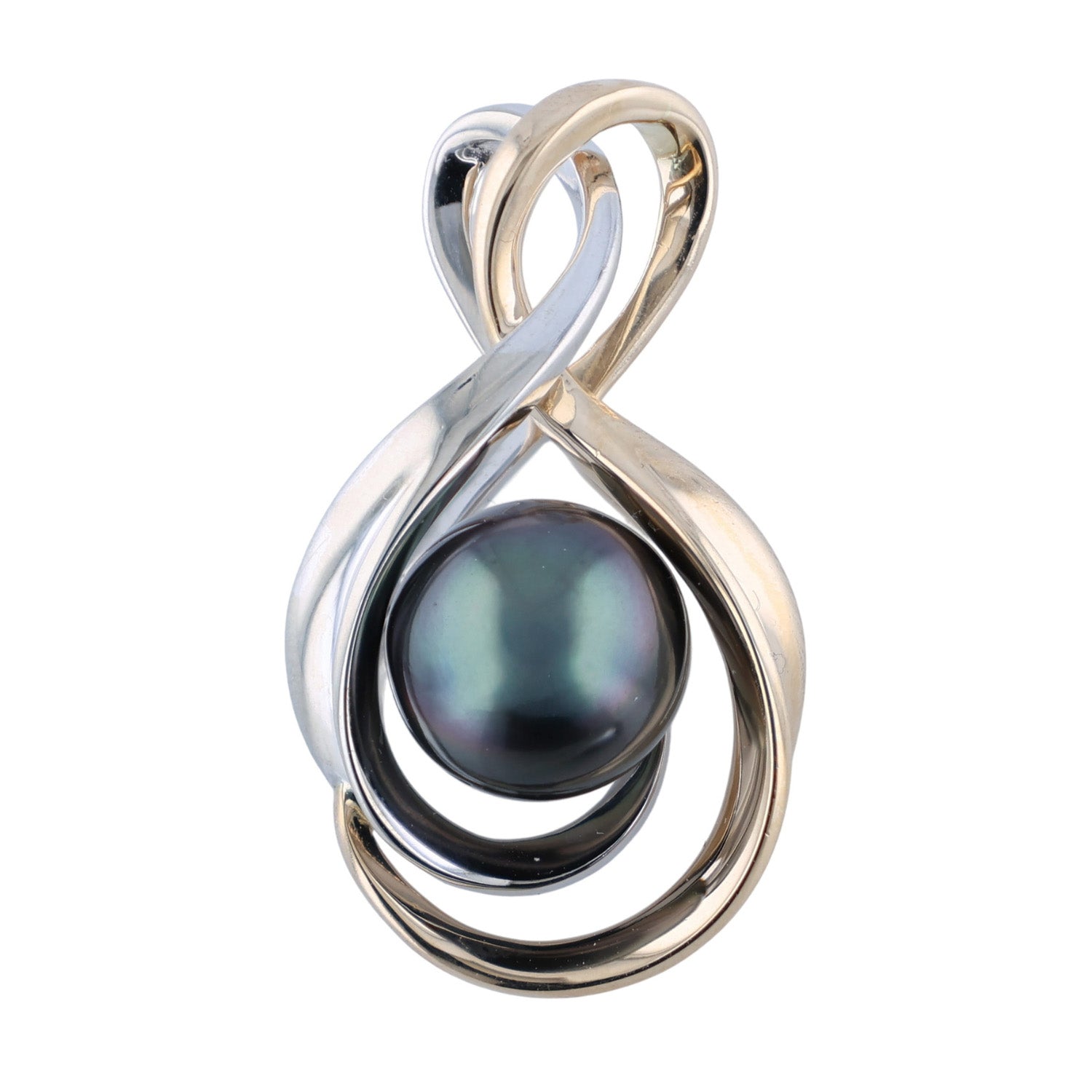 Estate 14K Two-Tone Tahitian Black Pearl Pendant