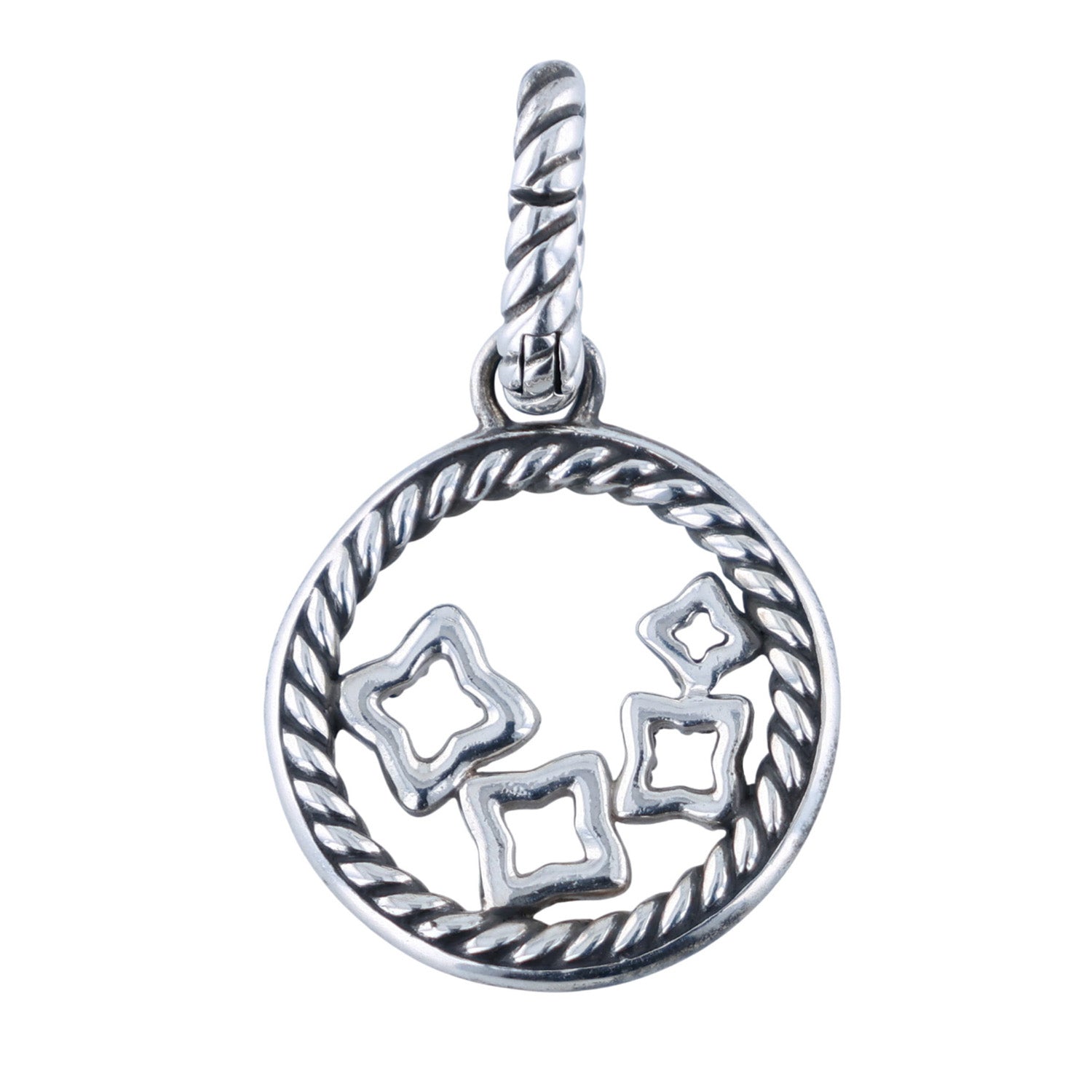From the Bella Cosa Jewelers estate collection. This pre-owned David Yurman small diamond Quatrefoil charm pendant has been set in sterling silver. This David Yurman pendant features 0.10 carats of diamonds that are H to I in color and SI1 to SI2 in clarity. Chain sold separately.
