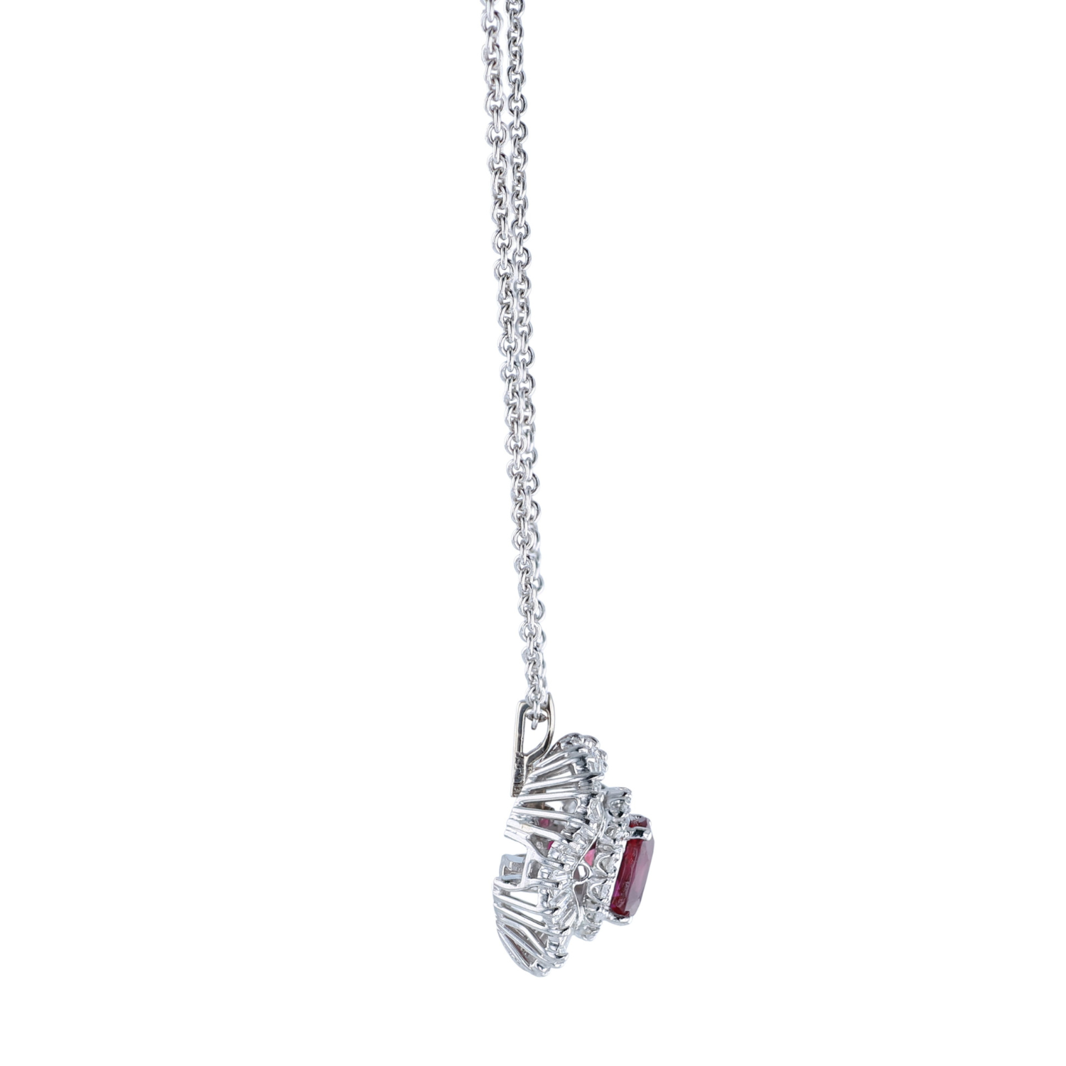 From the Bella Cosa Jewelers estate collection. This pre-owned ruby and diamond ring has been set in platinum is convertible to a pendant. This ring features a 2.95 carat no-heat ruby that is GIA certified and 2.00 carats of diamonds that are F to H in color and VVS2 to SI1 in clarity. Diamond weights are estimated.