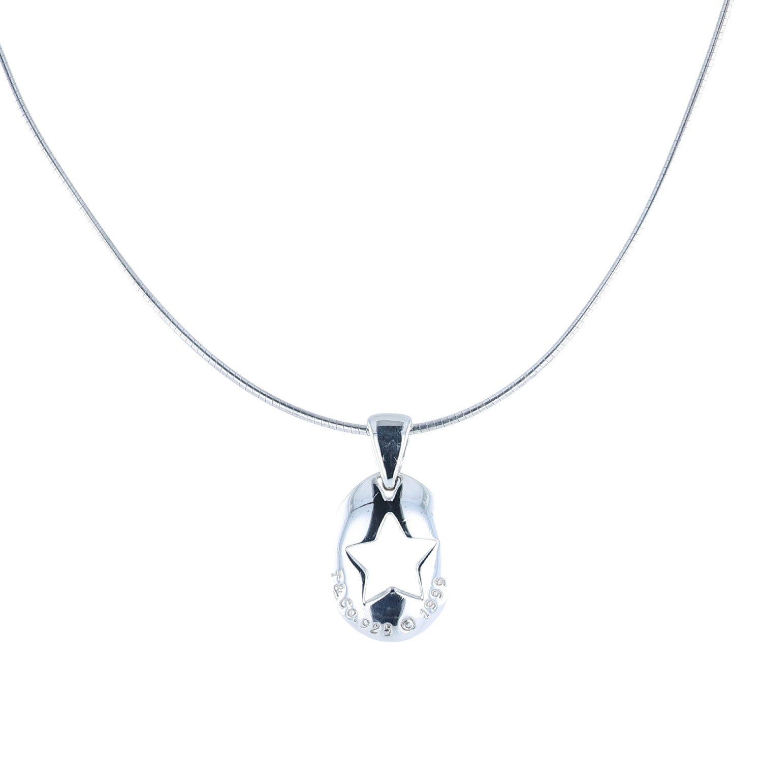 From the Bella Cosa Jewelers estate collection. This pre-owned Tiffany & Co. stencil star pendant has been set in sterling silver and comes with a wire chain that measures 16 inches in length.