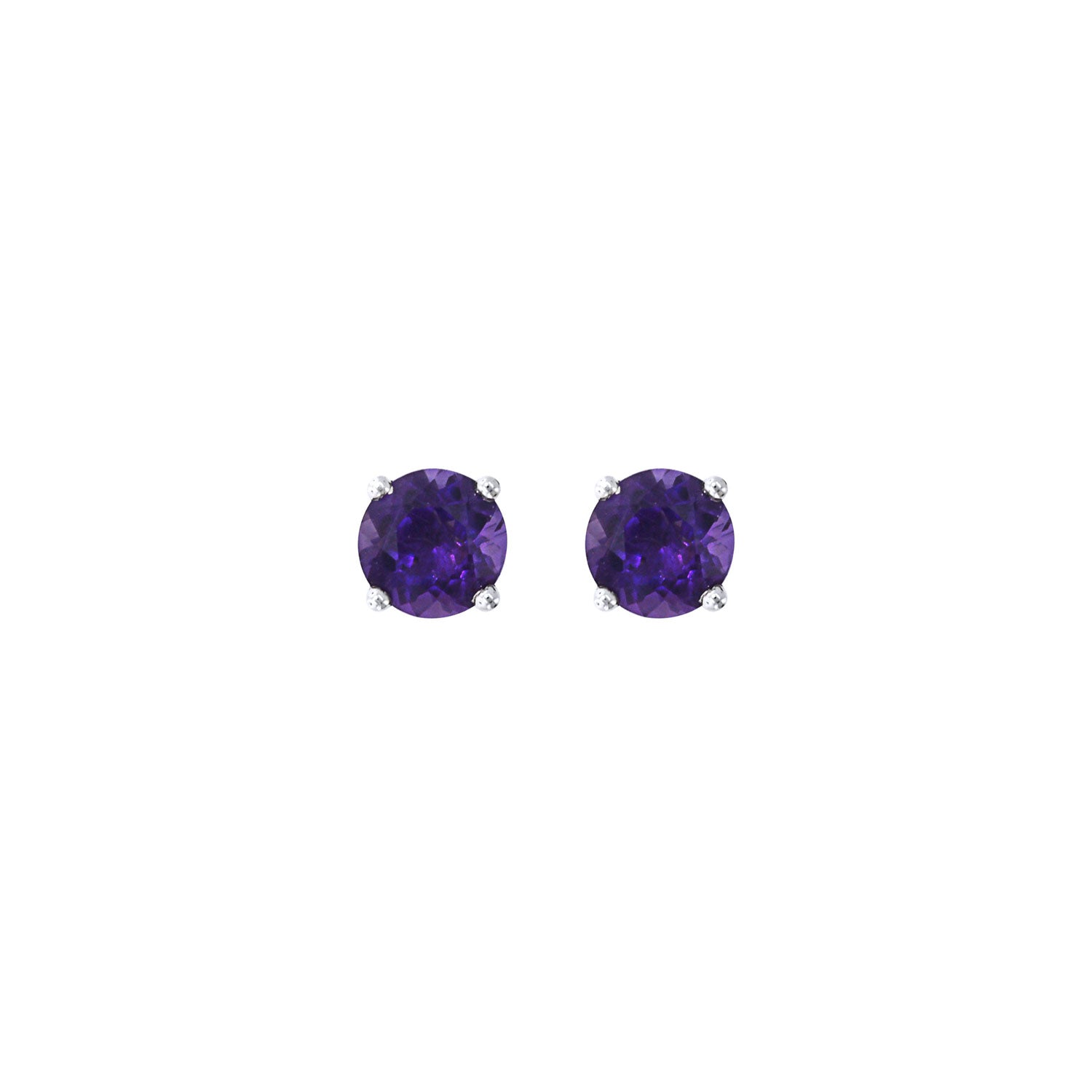 This pair of amethyst stud earrings have been set in 14K white gold.
