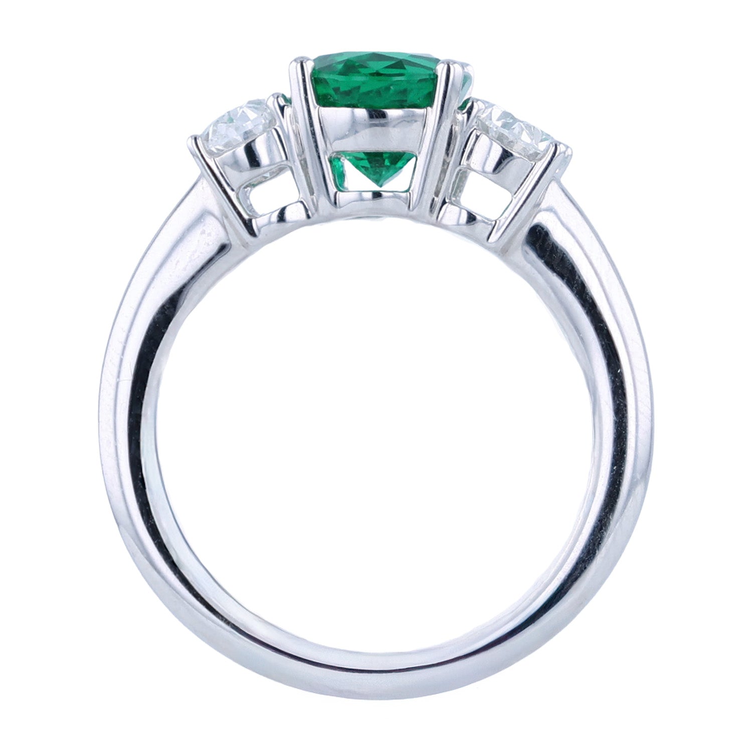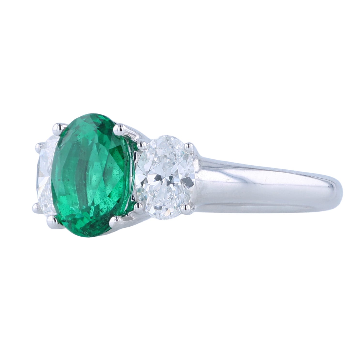 Spark Creations Platinum 2.01ct Emerald and Diamond Three Stone Ring