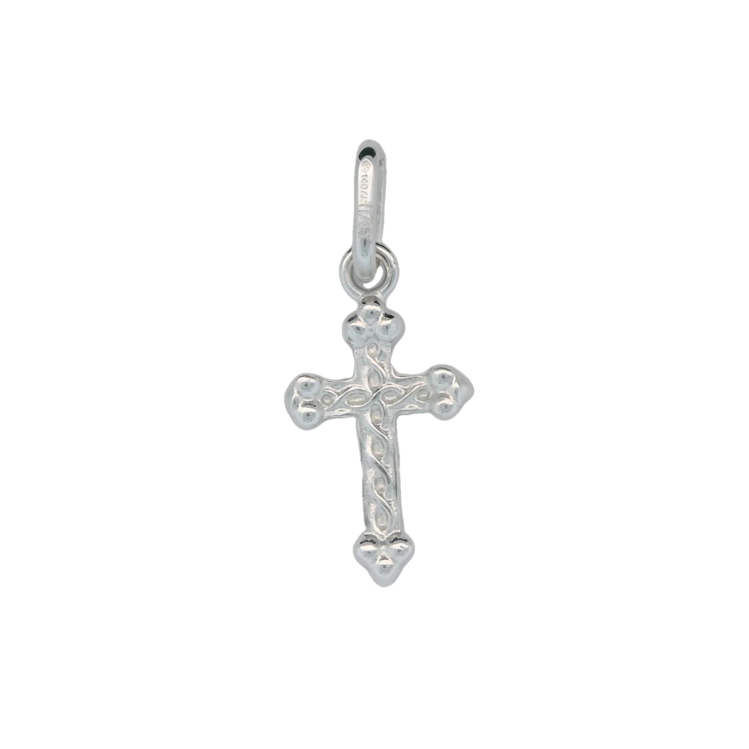This solid gold cross is set in 18K white gold and is made in Italy.