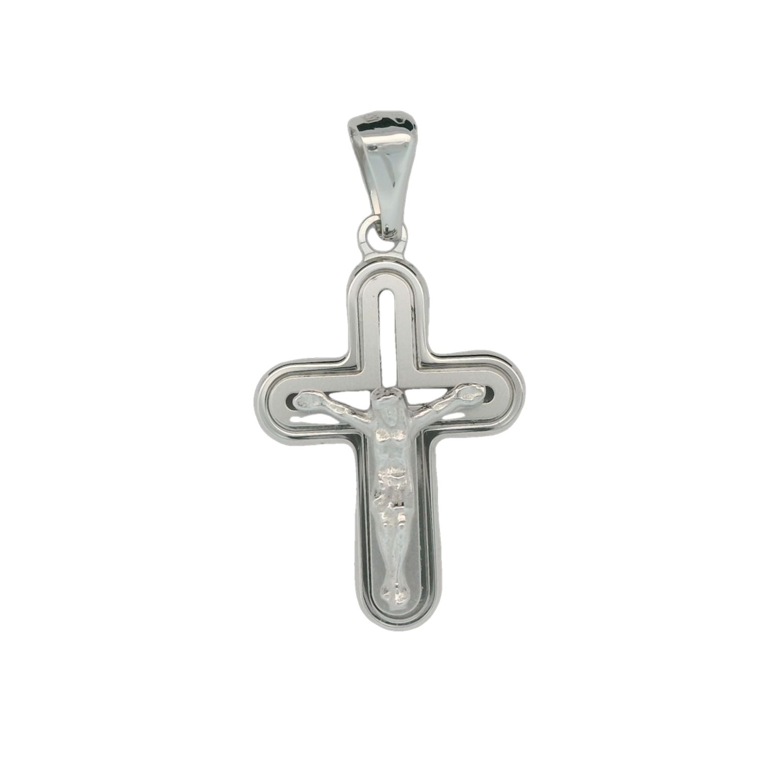 This solid gold crucifix is set in 18K white gold and is made in Italy.