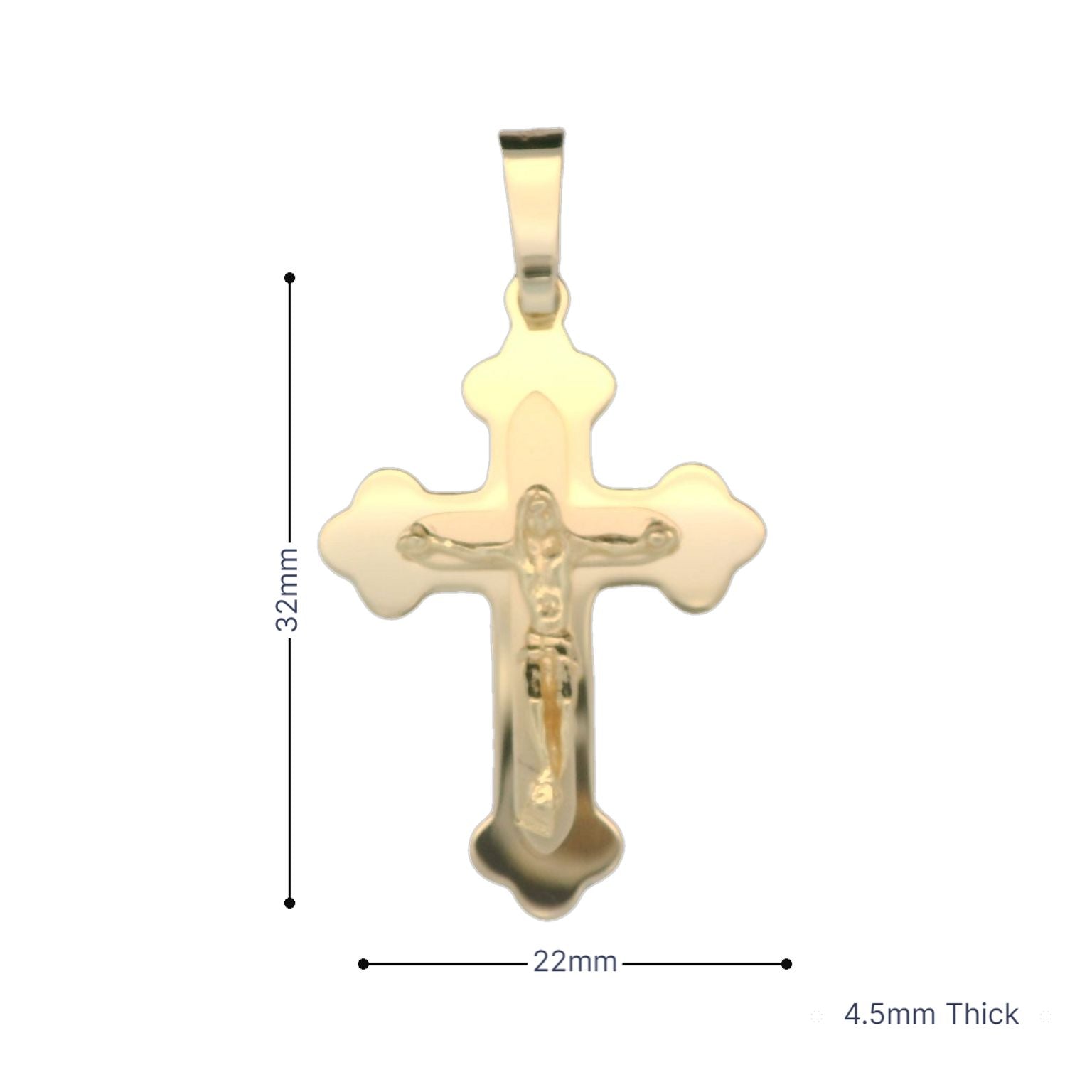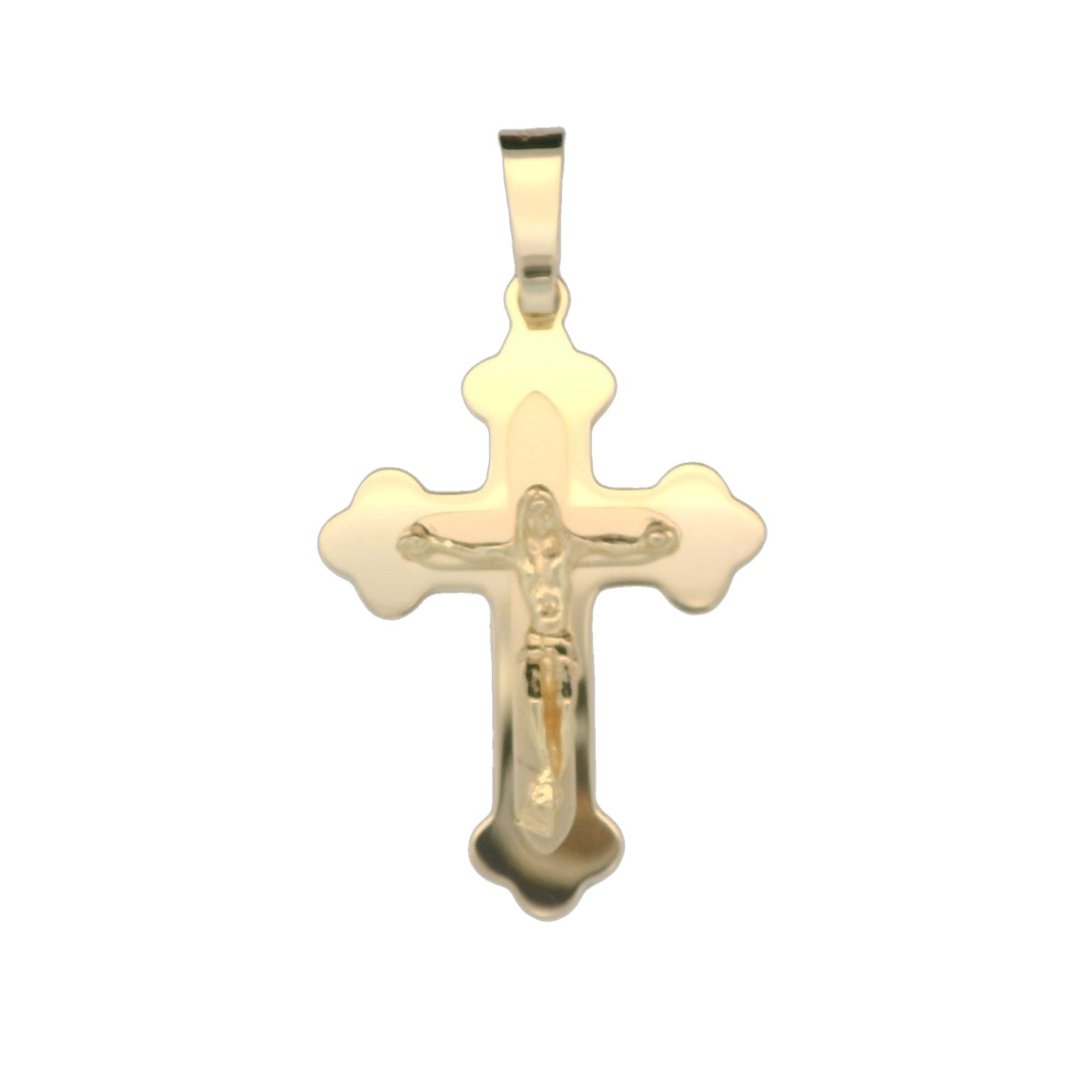 This solid gold crucifix is set in 18K yellow gold and is made in Italy.