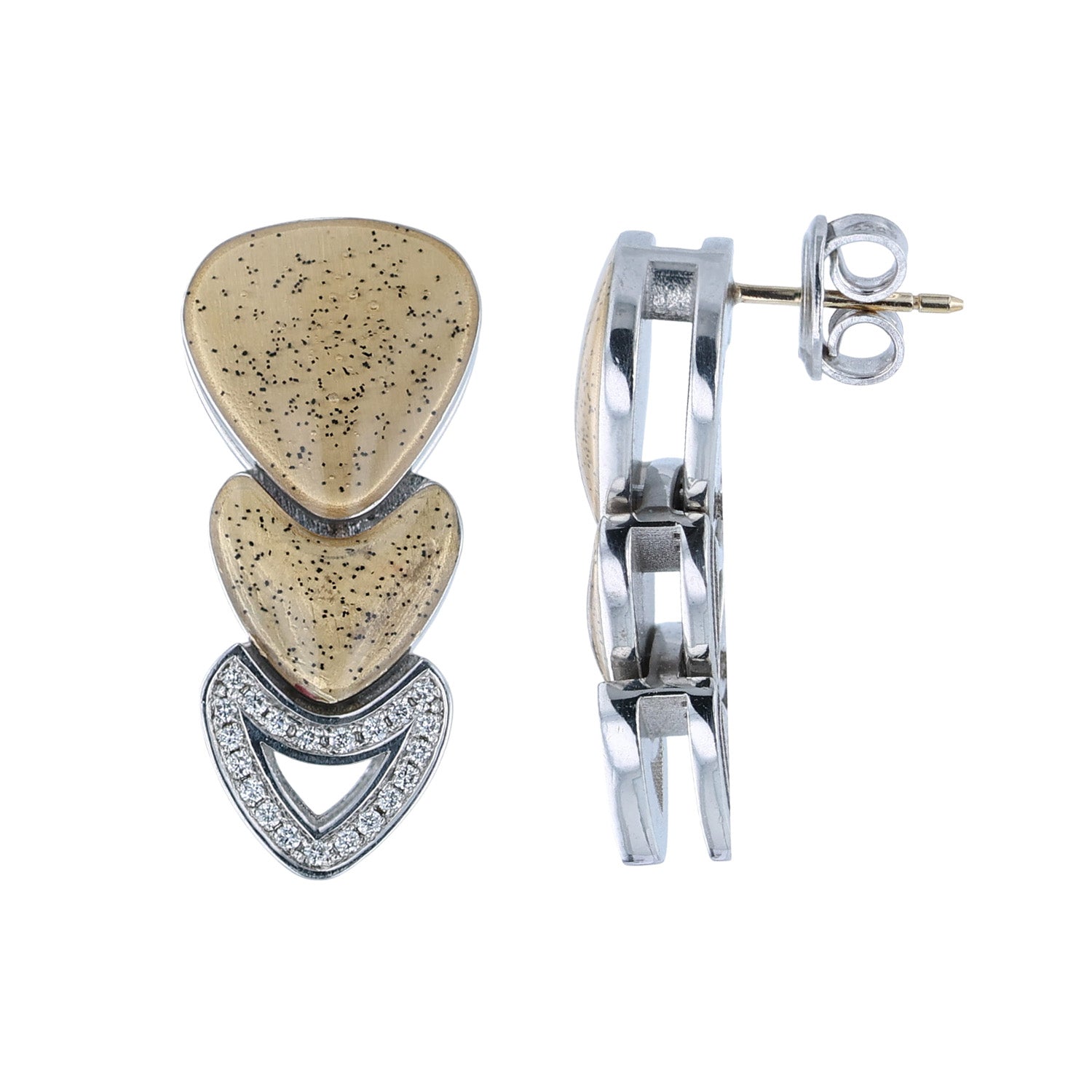 From our SOHO collection. This pair of sterling silver earrings have 18K posts.