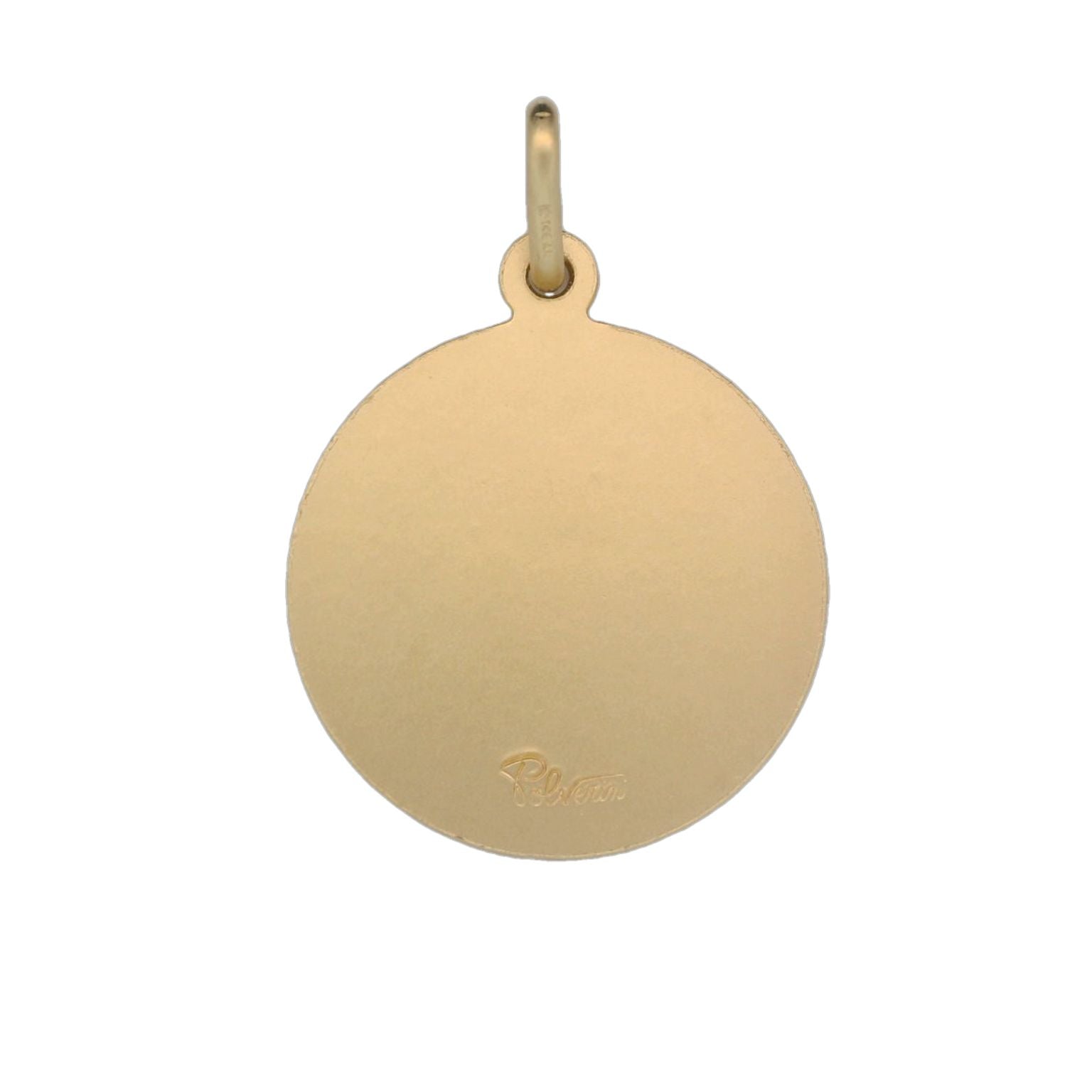 This solid gold miraculous medal is set in 18K yellow gold and is made in Italy. This miraculous medal is coined.