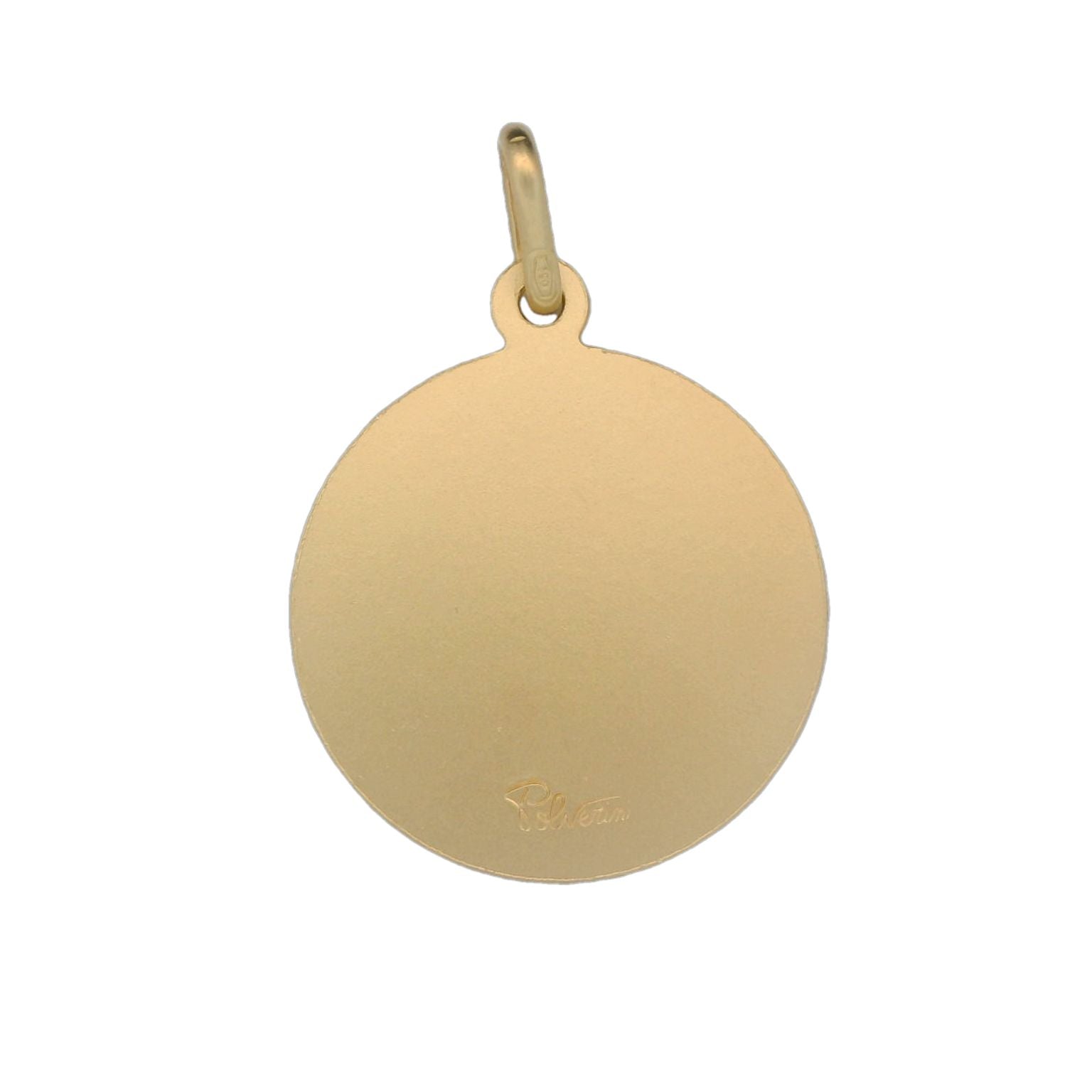 This solid gold miraculous medal is set in 18K yellow gold and is made in Italy. This miraculous medal is coined.