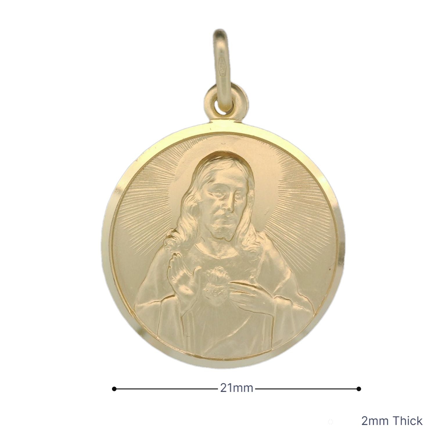 Italian 18K Coined Sacred Heart Pendant - 21MM