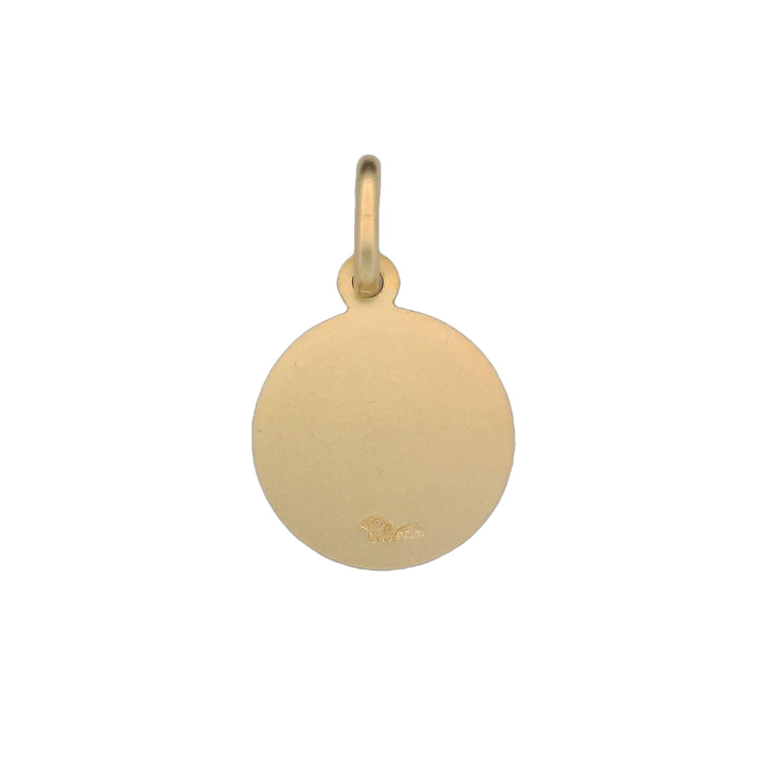 This solid gold miraculous medal is set in 18K yellow gold and is made in Italy. This miraculous medal is coined.