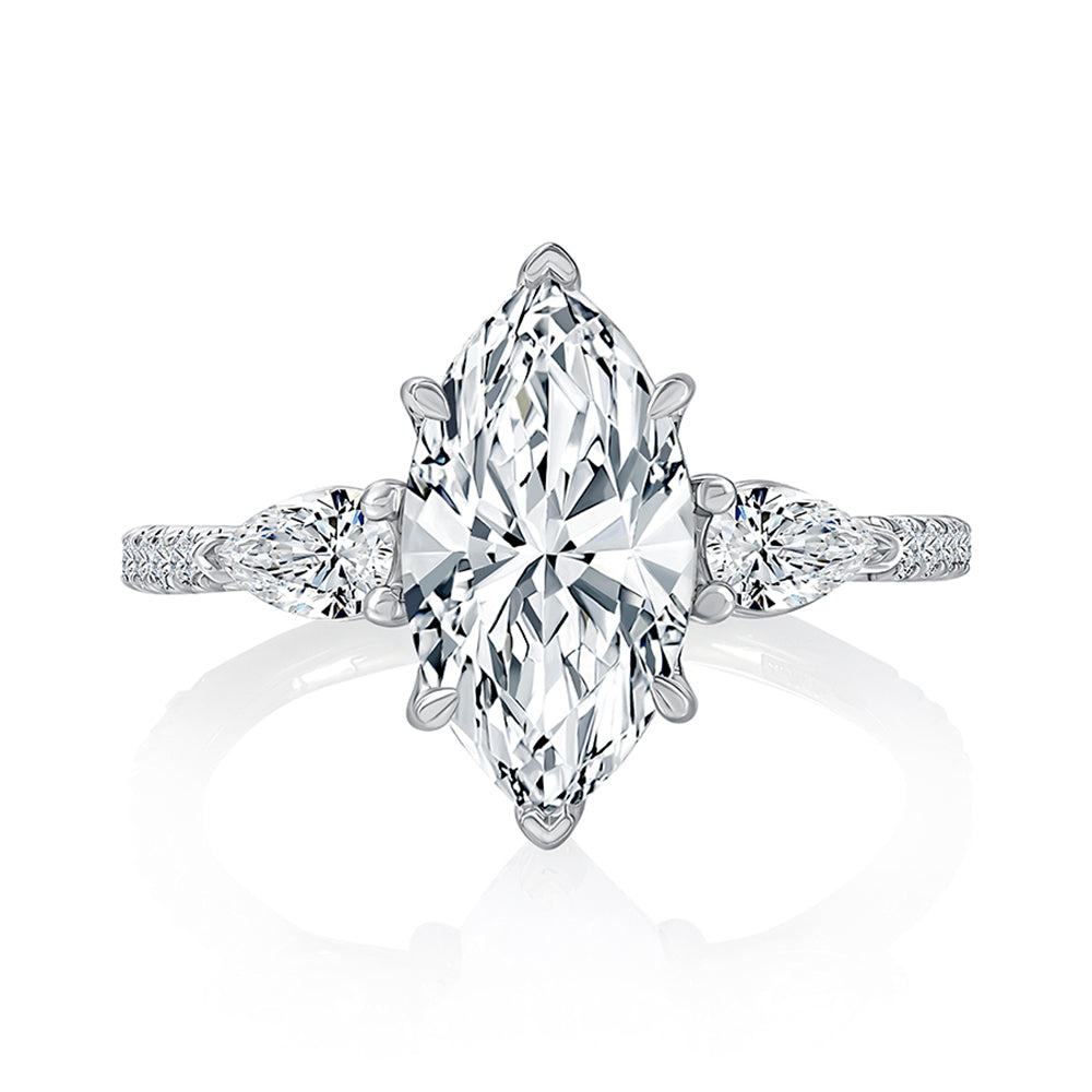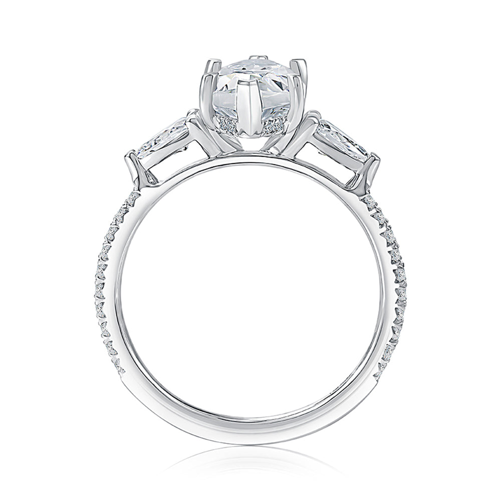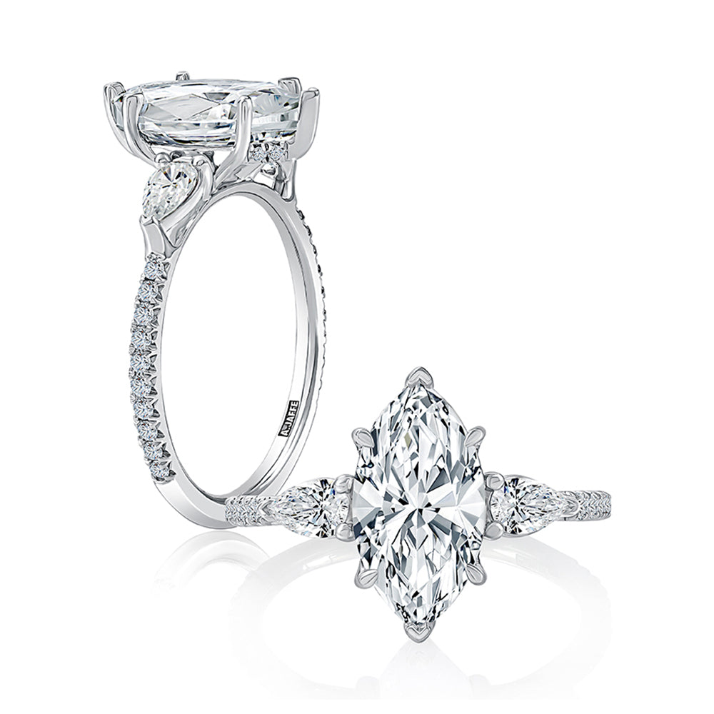 A JAFFE 14K Three Stone Diamond Engagement Ring