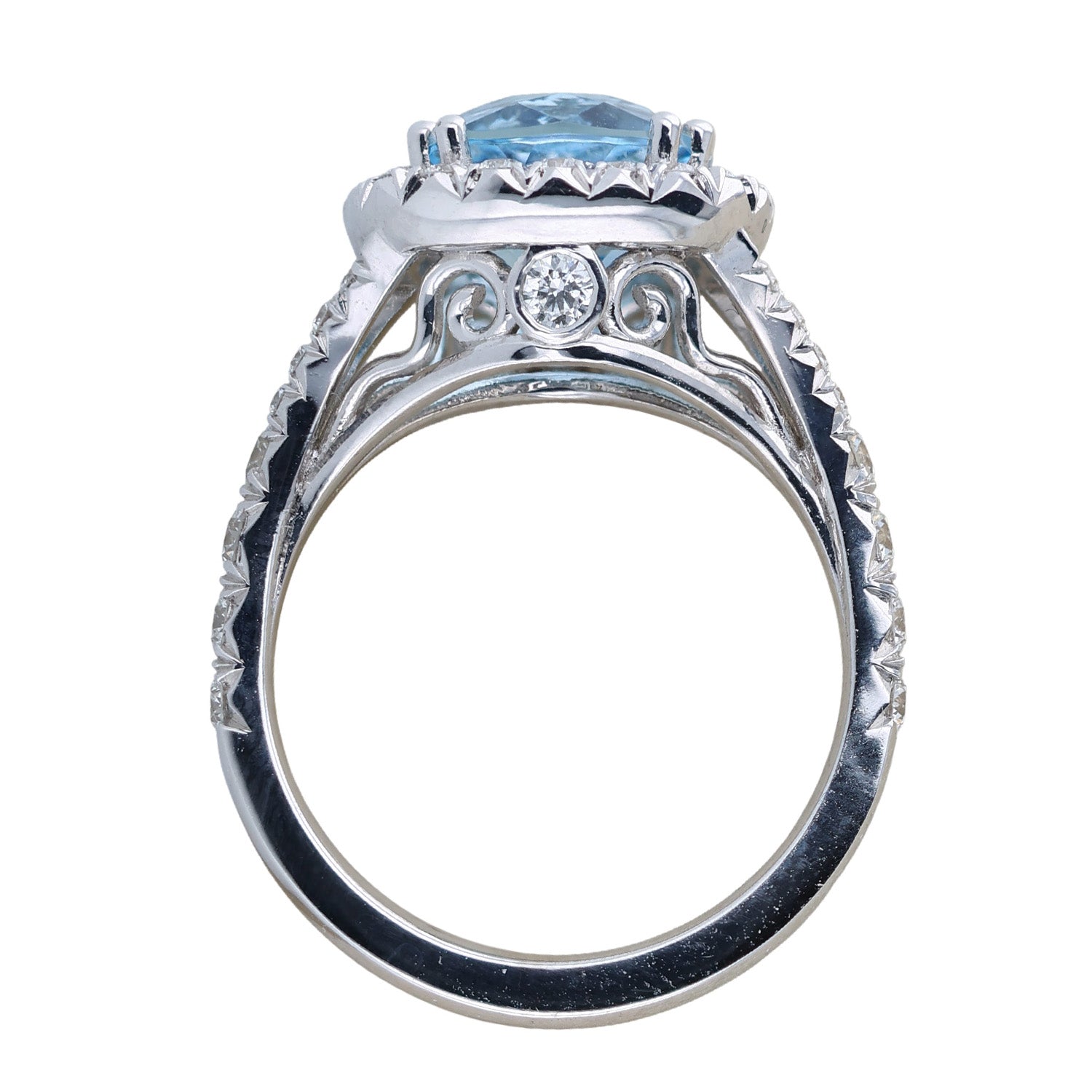 Bella Cosa Custom 18K 3.48ct Aquamarine and Diamond Ring