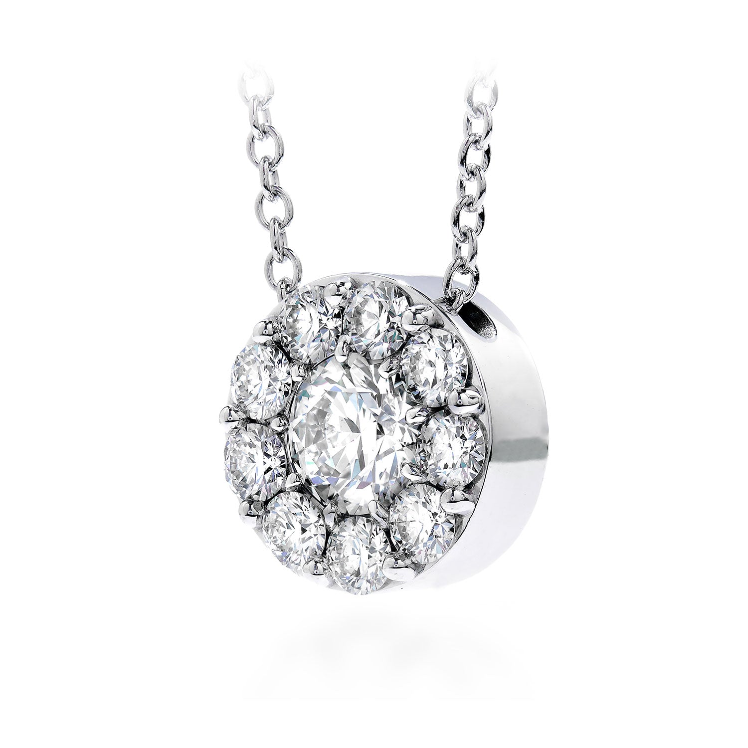 We took the cluster diamond trend to the next level with this pendant. Featuring a center diamond surrounded by nine smaller diamonds, this Hearts On Fire classic is sure to become your go-to piece.