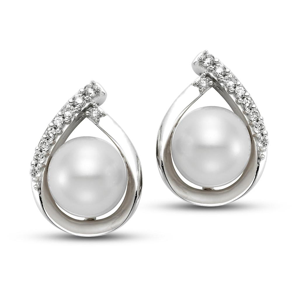 From our Mastoloni collection. This pair of pearl and diamond earrings feature stones that have been set in 14K white gold.