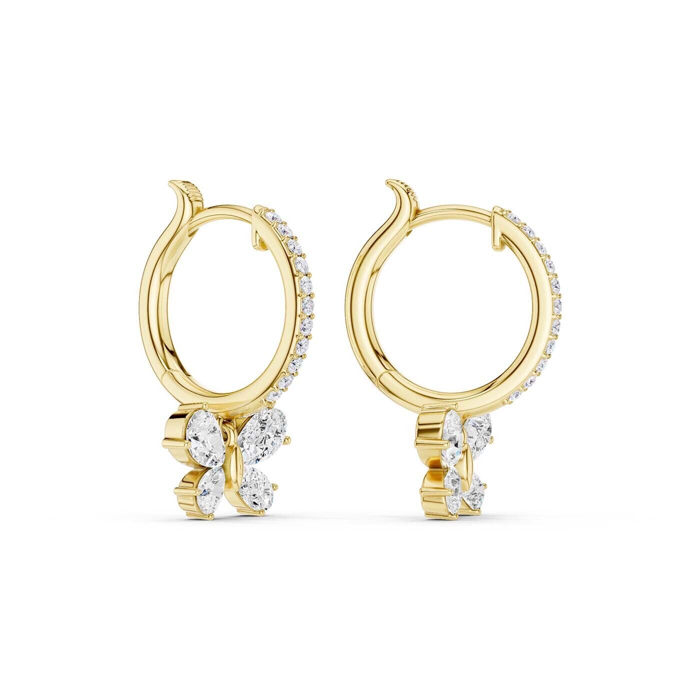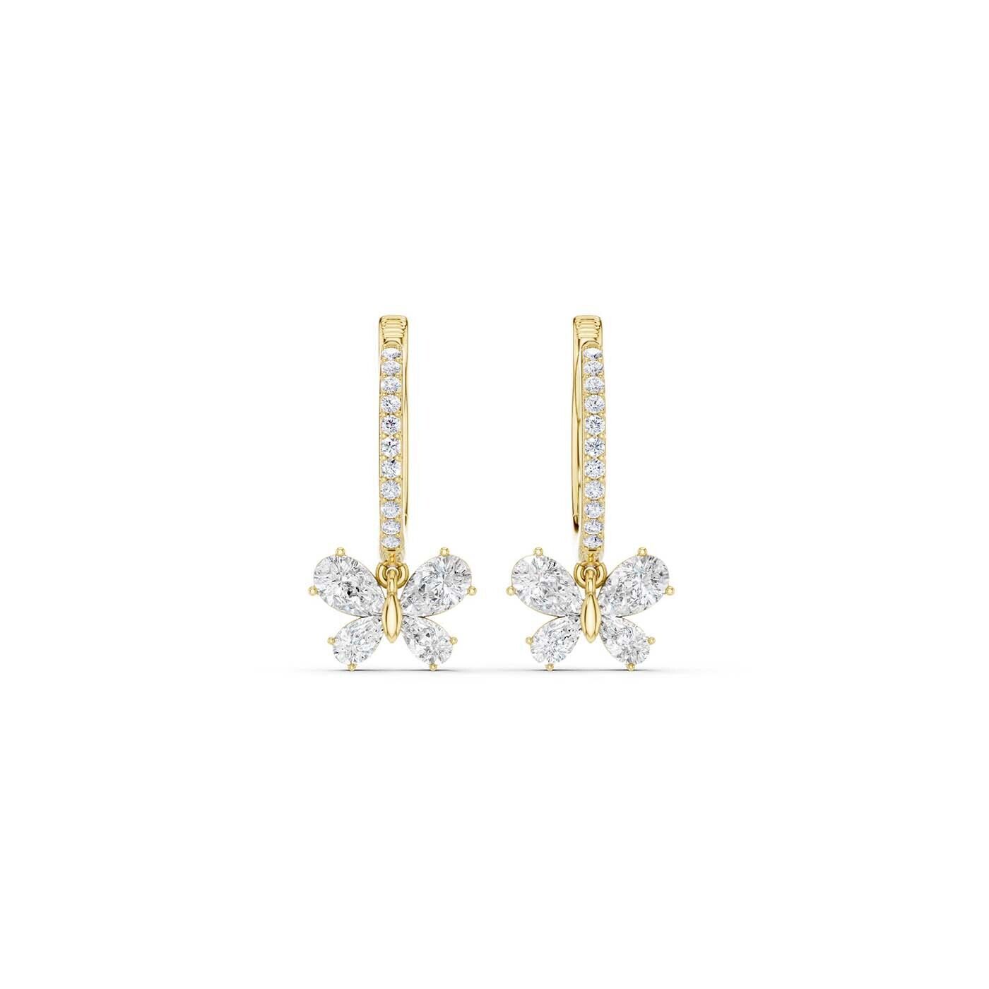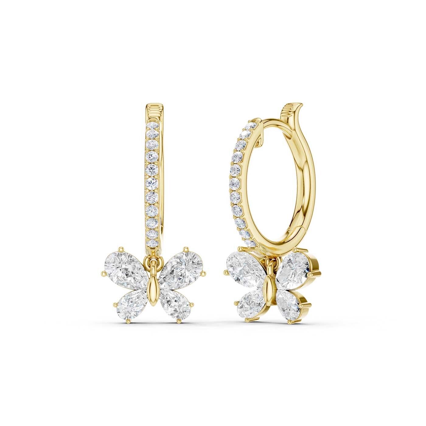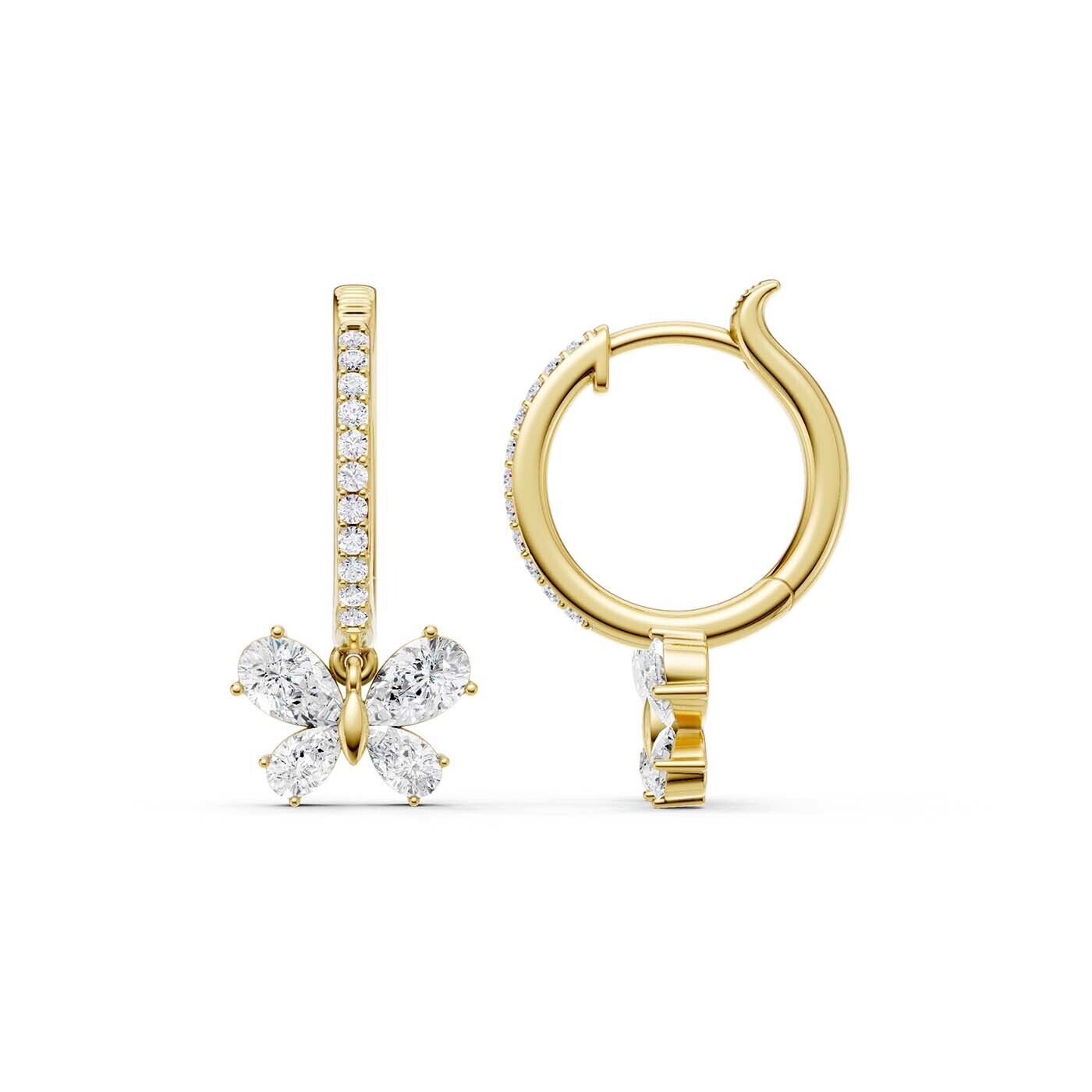 Elegant and enchanting, these butterfly lab grown diamond drop hoop earrings are crafted in 14K yellow gold for a look that soars with sparkle.