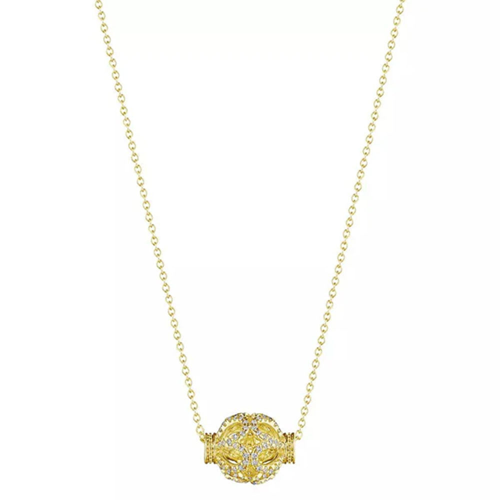 Sparkle in the Diamond Rose Bead Pendant in 18K yellow gold. Exquisite diamonds and captivating design from the Devotion Collection make it a sophisticated piece to symbolize your individual journey.