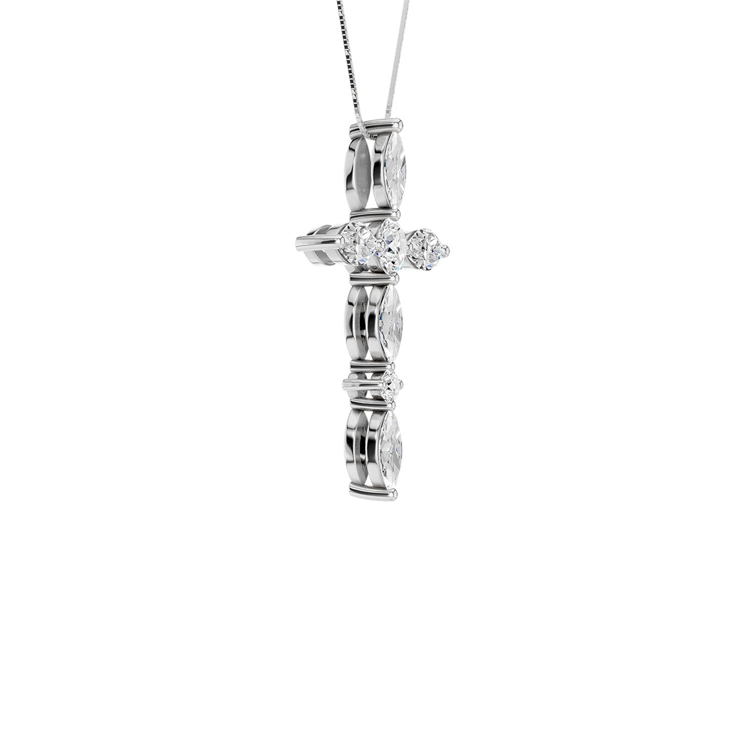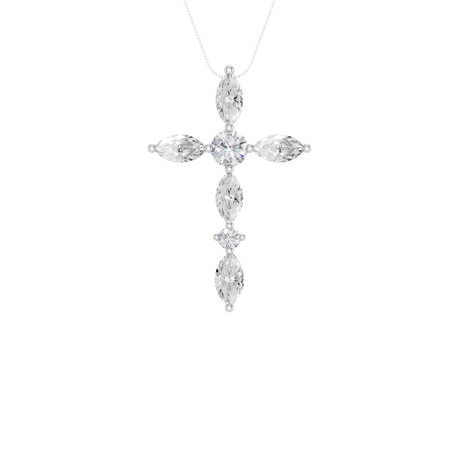 A symbol of faith and elegance, this lab grown diamond cross pendant features a stunning combination of round and marquise cut lab grown diamonds.