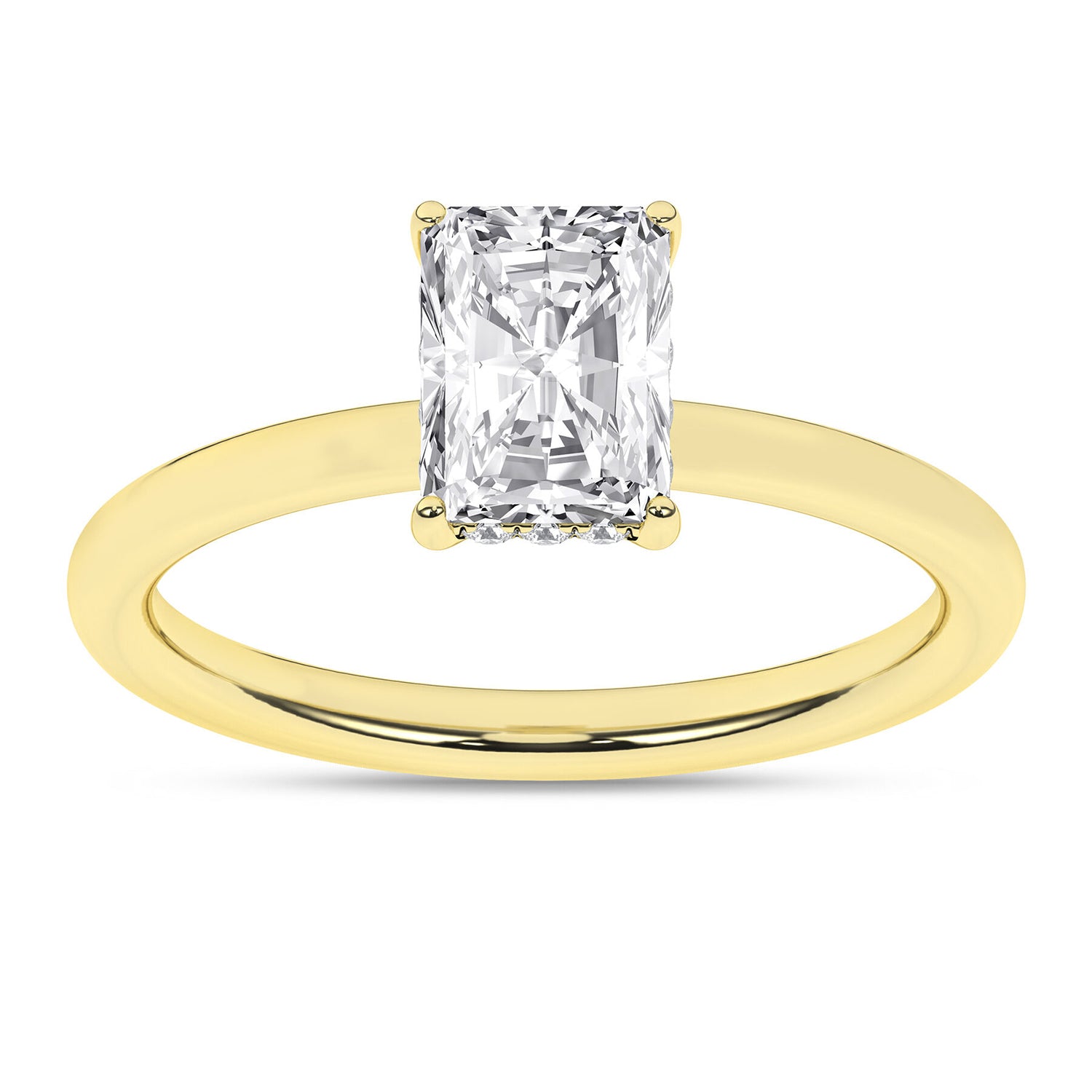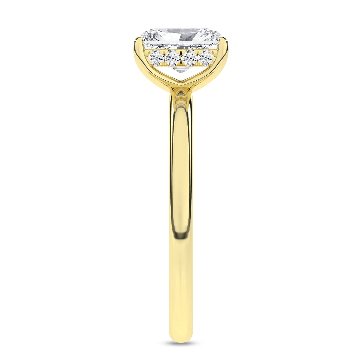 This lab-grown diamond engagement ring has been expertly crafted in 14K yellow gold.