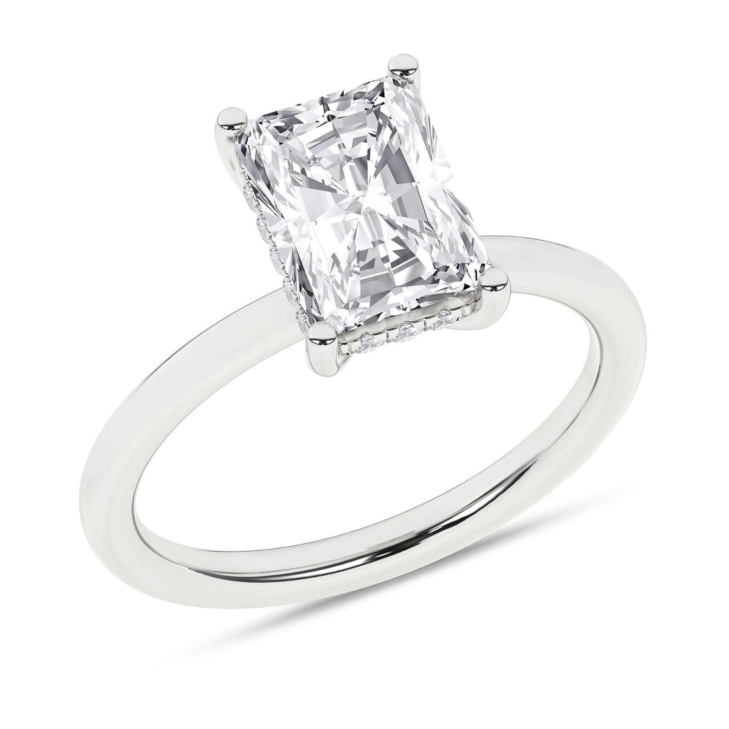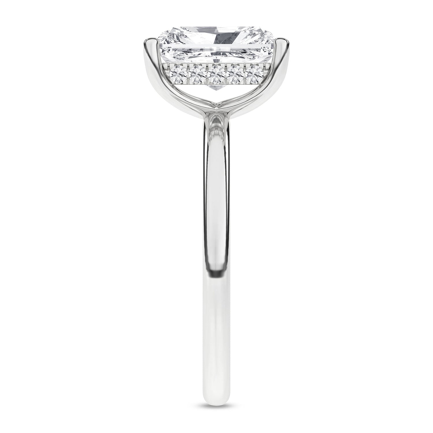 This lab-grown diamond hidden halo engagement ring has been expertly crafted in 14K white gold.