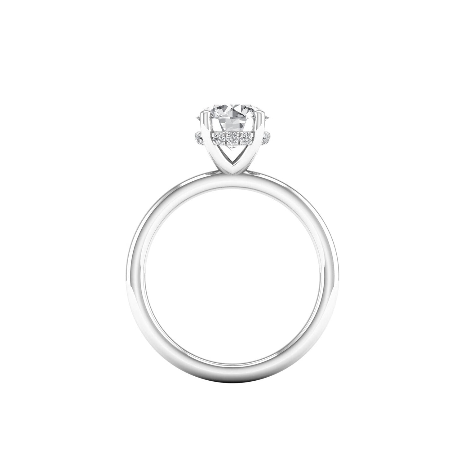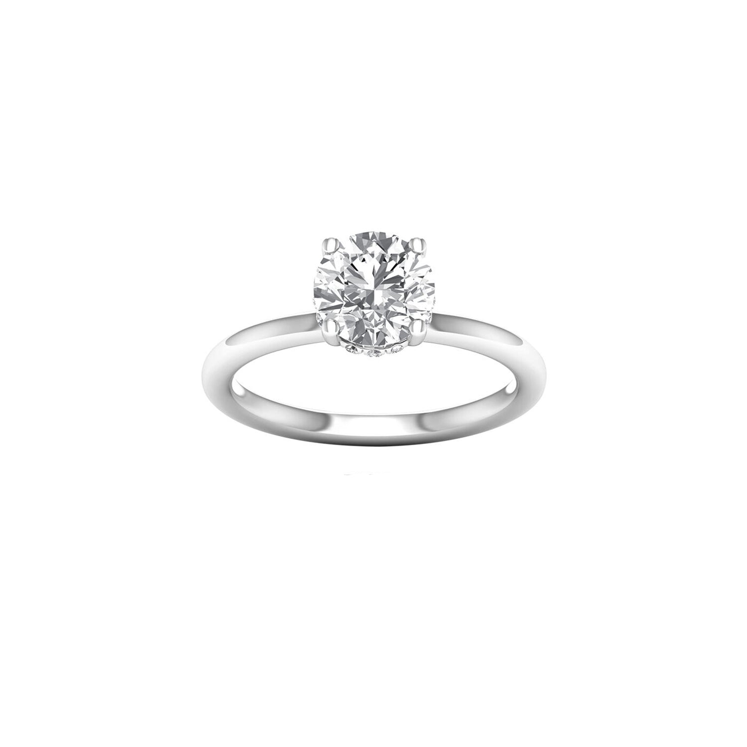This lab-grown diamond hidden halo engagement ring has been expertly crafted in 14K white gold.