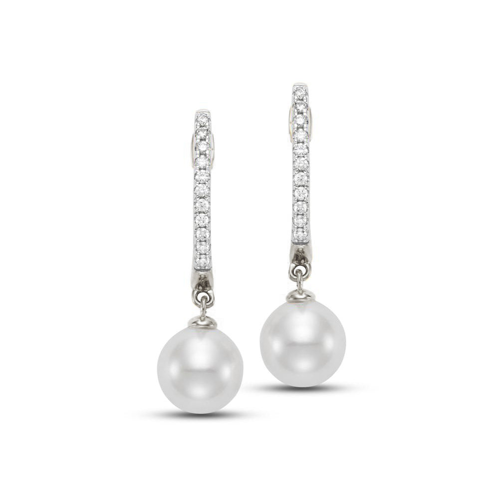 From our Mastoloni collection. This pair of pearl and diamond earrings feature stones that have been set in 14K white gold.