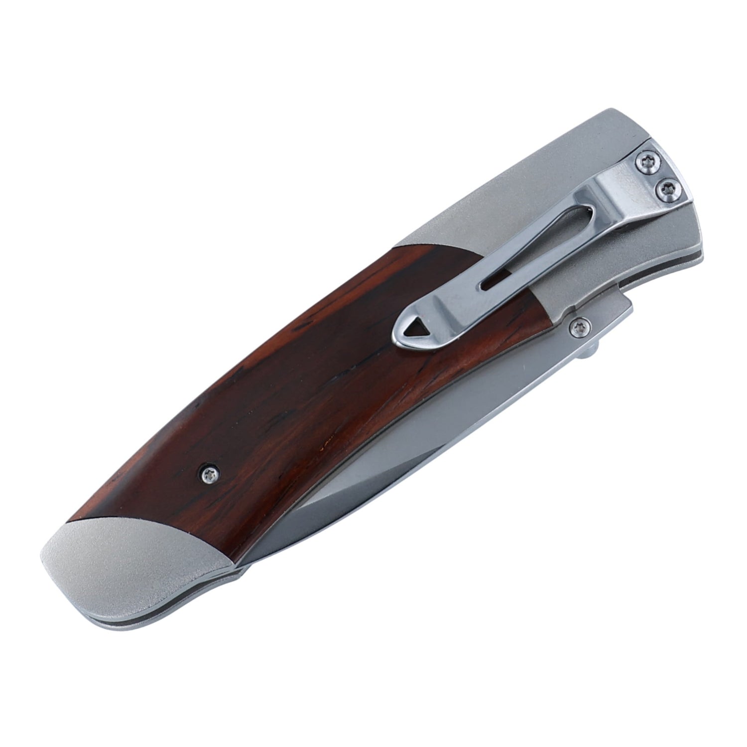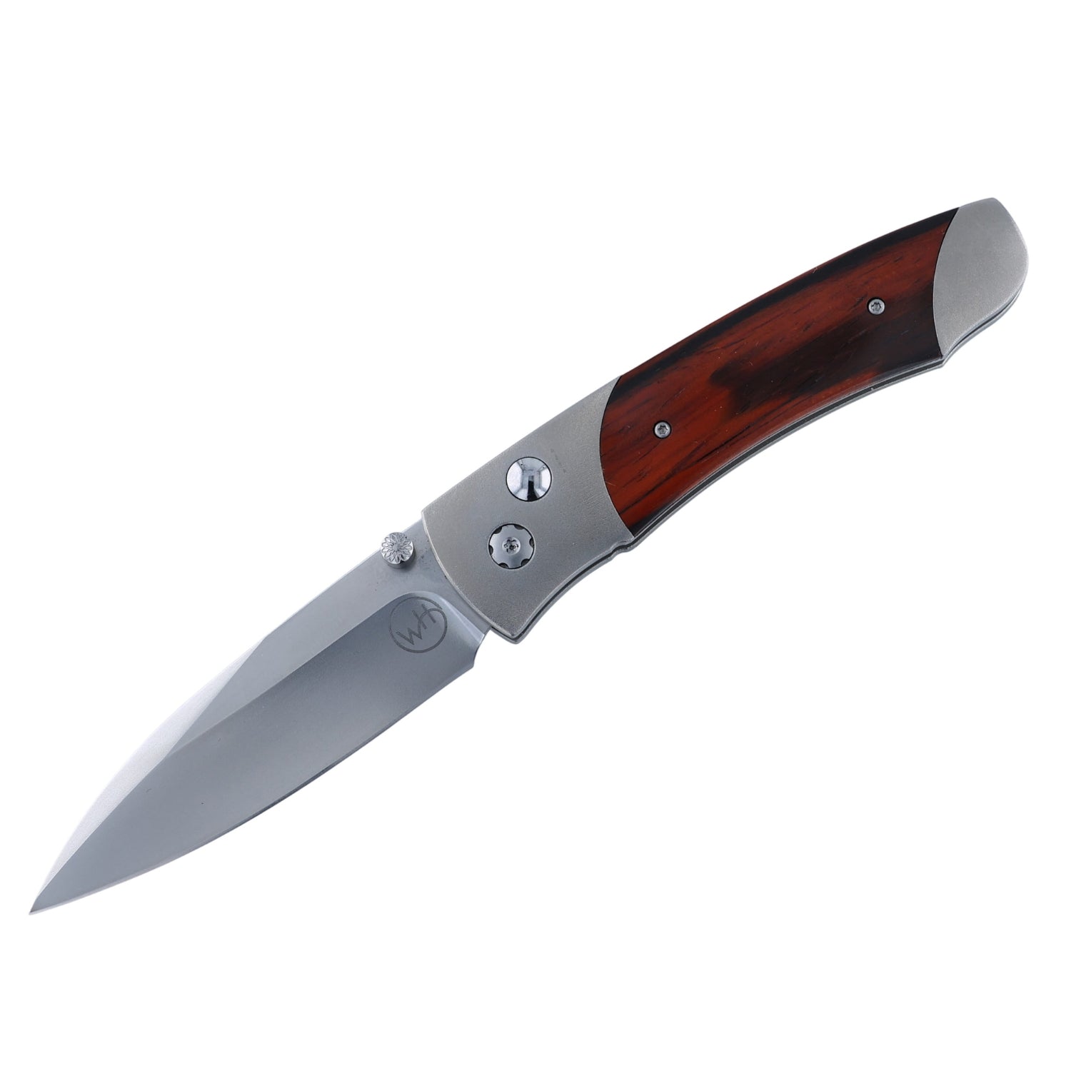 William Henry’s A200-7 expands on our tradition of fine folding knives with a design that has a little attitude, a lot of finesse, and remarkable utility in a compact and lightweight package. Each blade is crafted from S35VN stainless steel honed to a razor edge. The frame is hand-finished aircraft grade titanium inlaid with cocobolo wood. Finished with a stainless clip and stainless fittings.