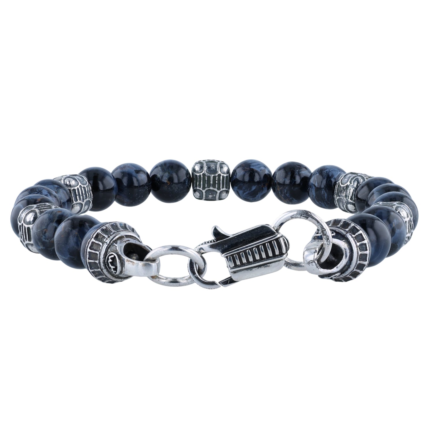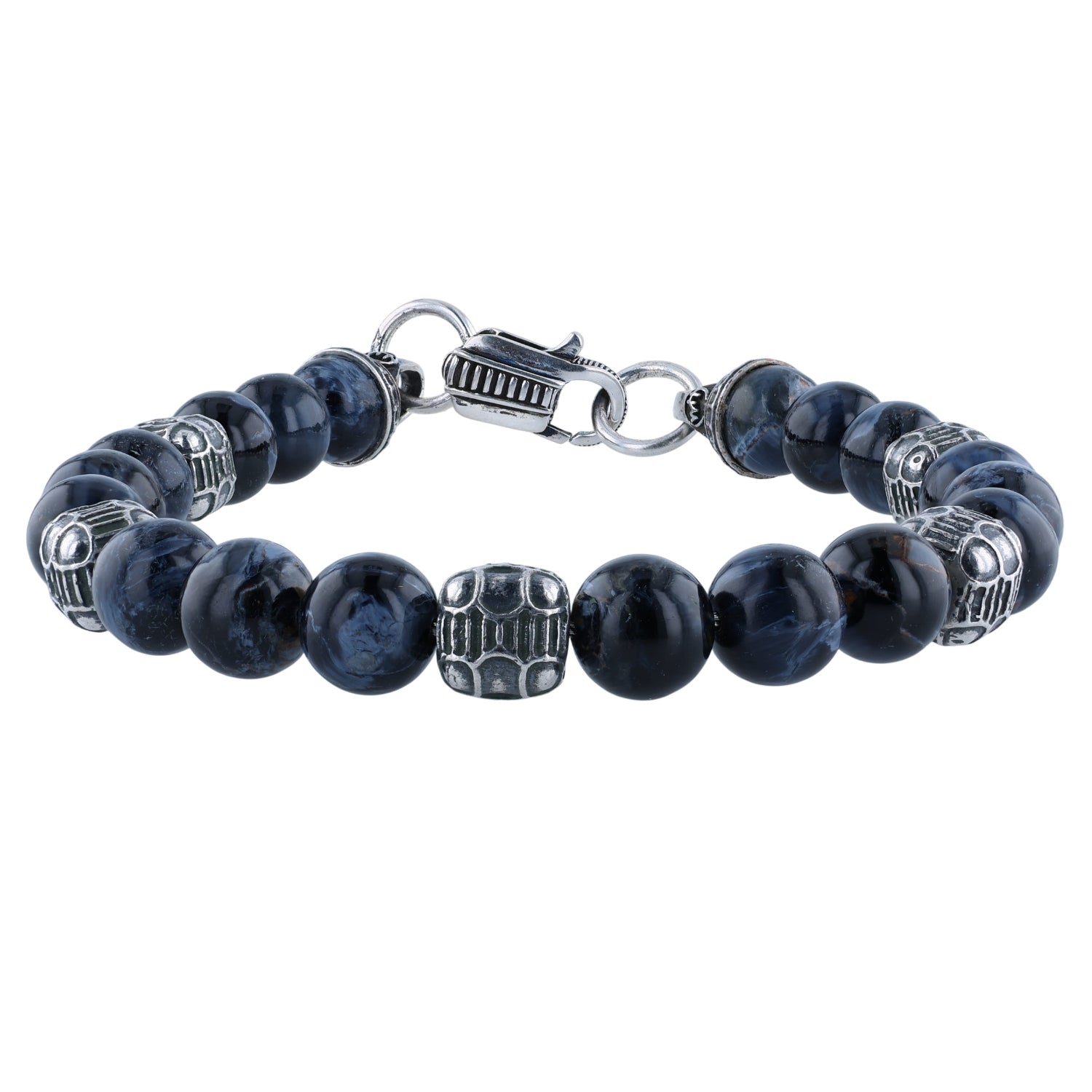 William Henry Celestia Beaded bracelet with Pietersite and Sterling Silver Beads - Large 7 7/8"